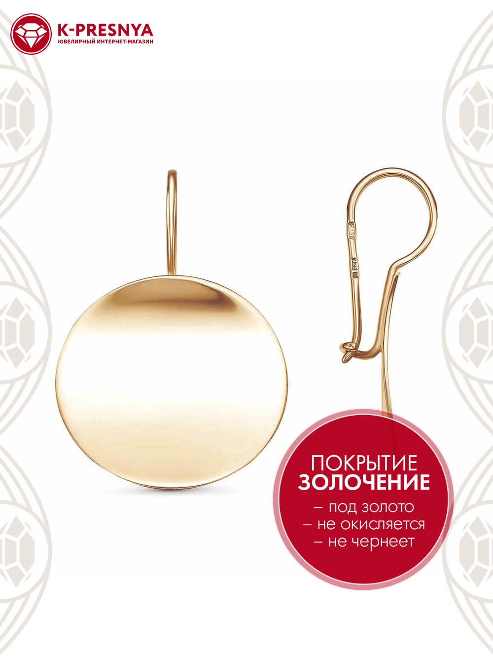 Серьги серебро 925 пробы, покрытие - золочение, без вставок