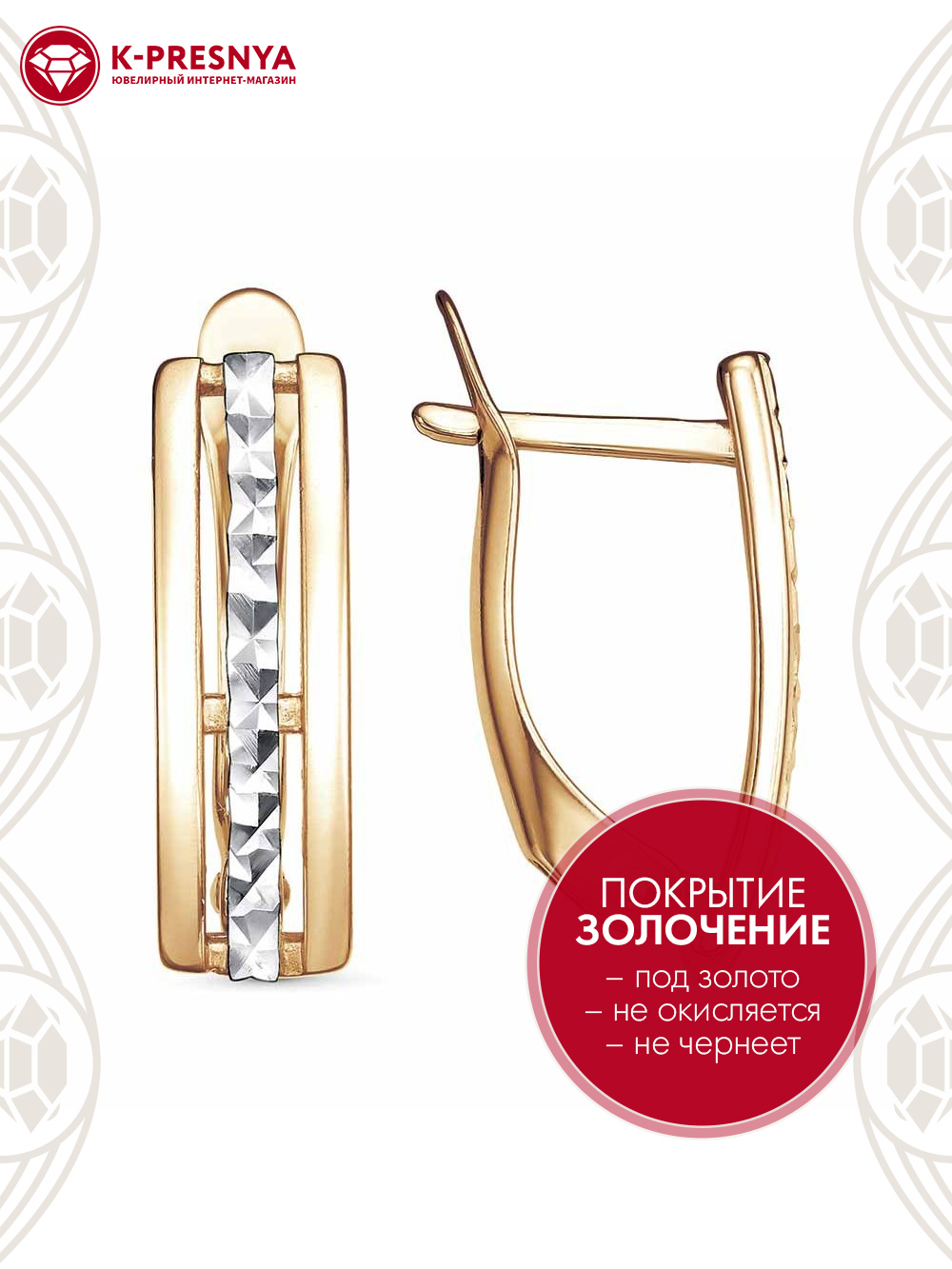 Серьги серебро 925 пробы, покрытие - золочение, отделка - алмазная грань, без вставок