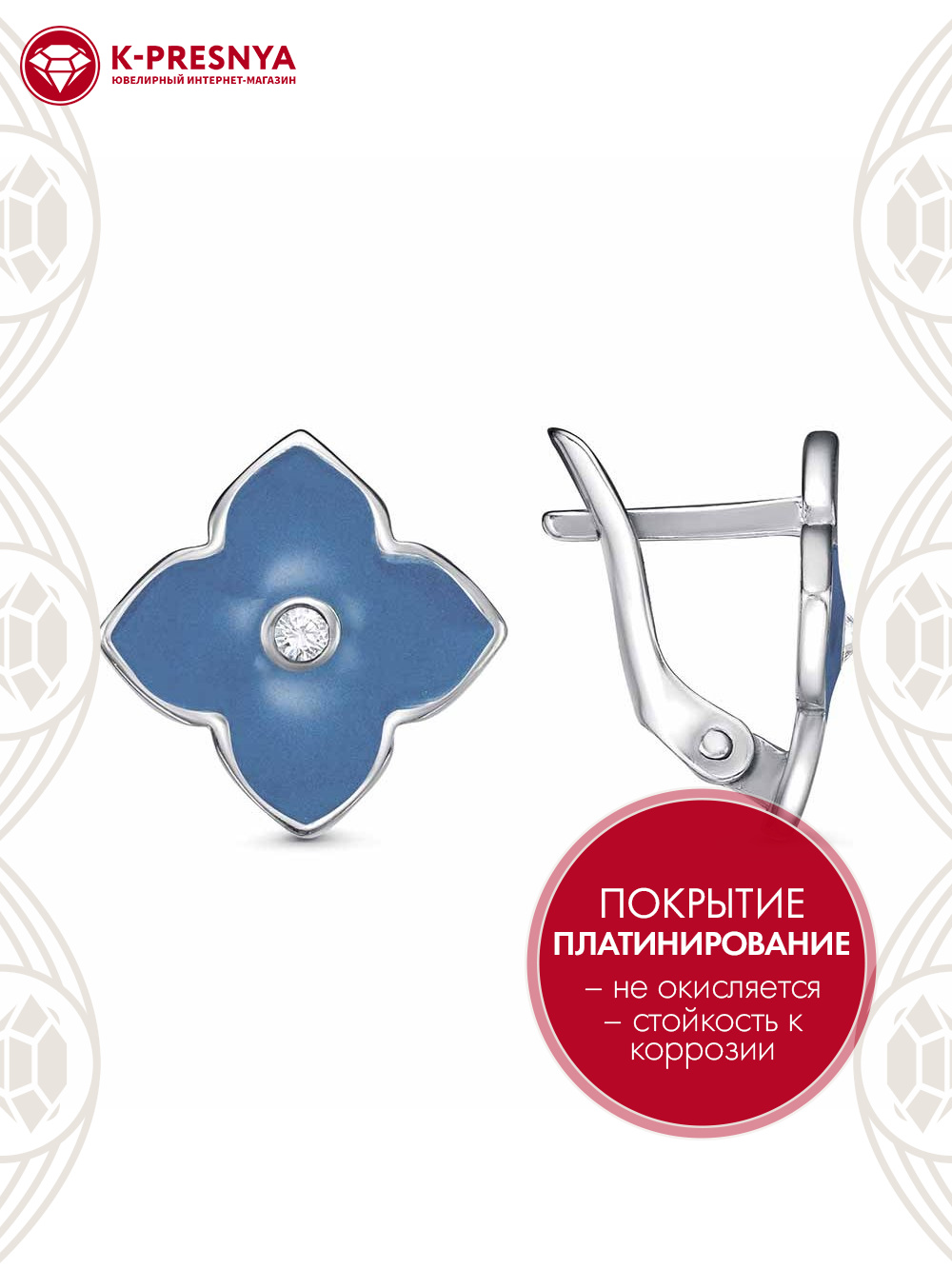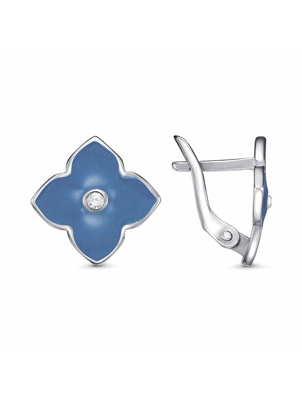 Серьги серебро 925 пробы, покрытие - платинирование, отделка - эмаль, вставка - стекло ювелирное preciosa