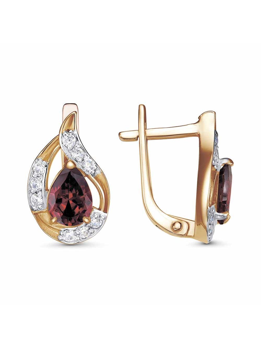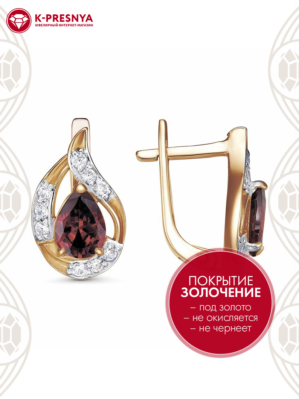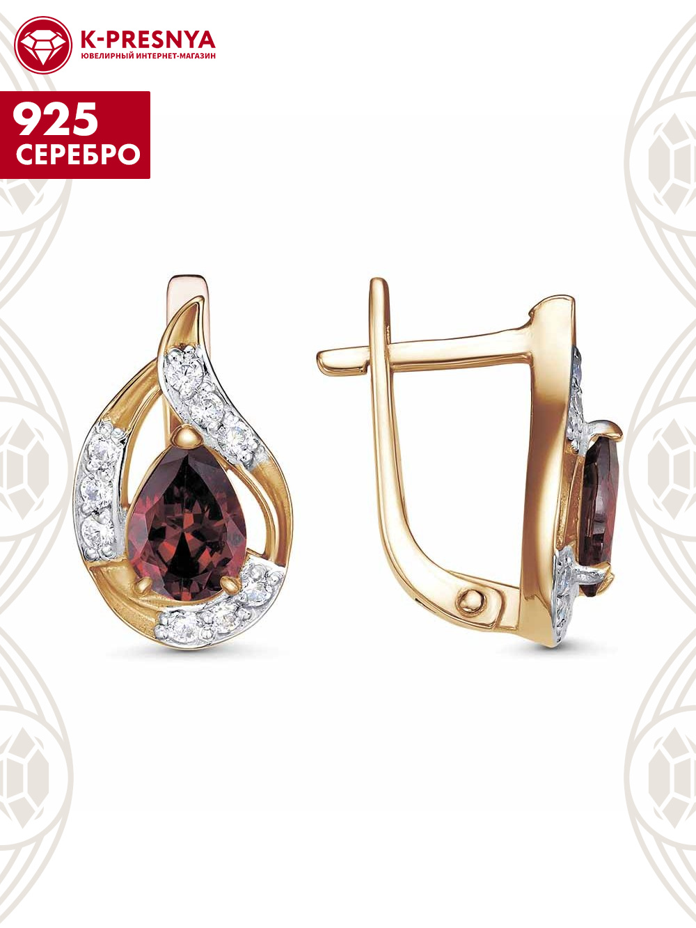 Серьги серебро 925 пробы, покрытие - золочение, выборочное родирование, вставка - фианит (недрагоценный камень)
