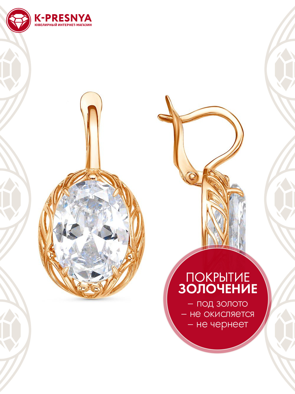 Серьги бижутерия, покрытие - золочение, вставка - фианит (недрагоценный камень)
