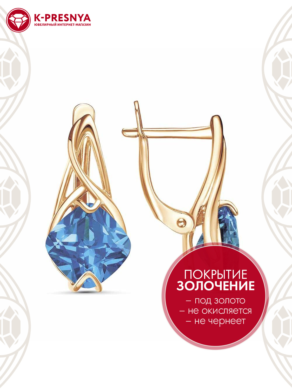 Серьги бижутерия, покрытие - золочение, вставка - фианит (недрагоценный камень)