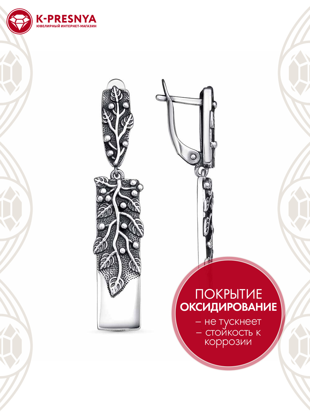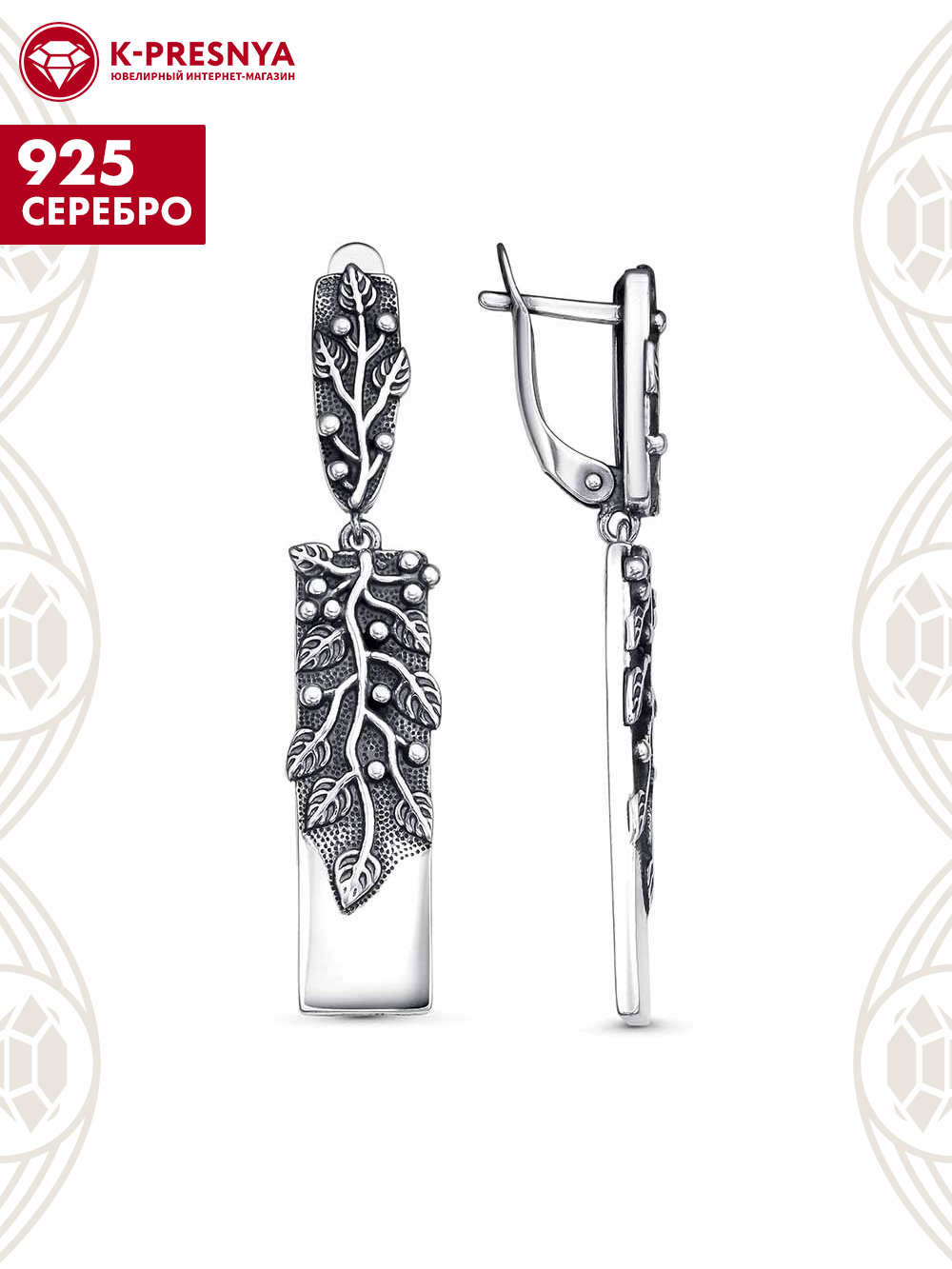 Серьги серебро 925 пробы, покрытие - оксидирование, без вставок