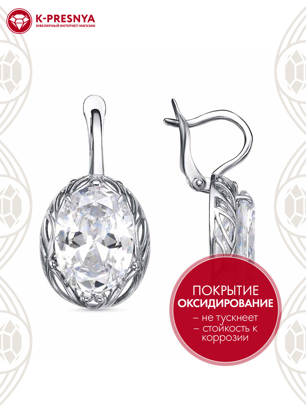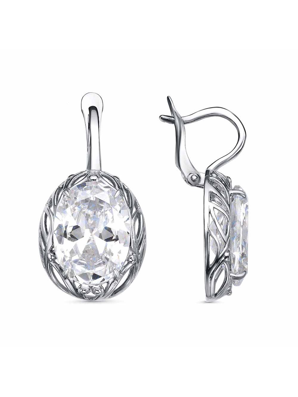 Серьги серебро 925 пробы, покрытие - оксидирование, вставка - фианит (недрагоценный камень)