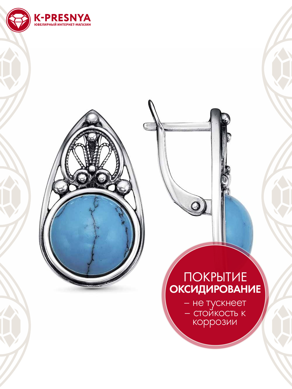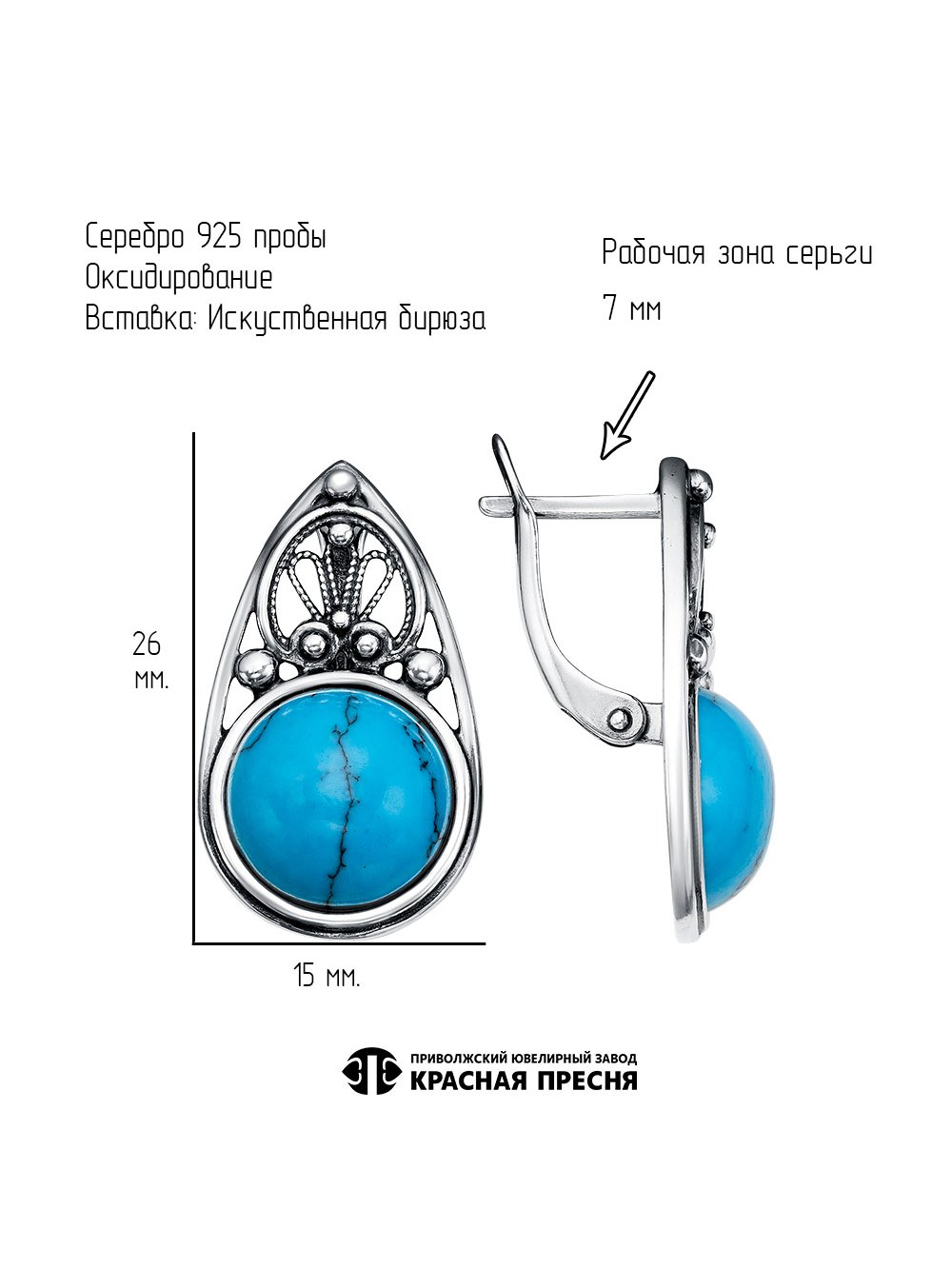 Серьги серебро 925 пробы, покрытие - оксидирование, вставка - искусственная бирюза