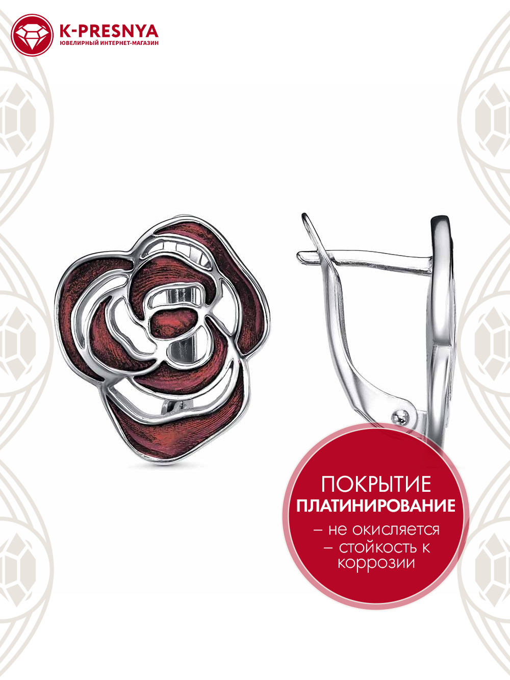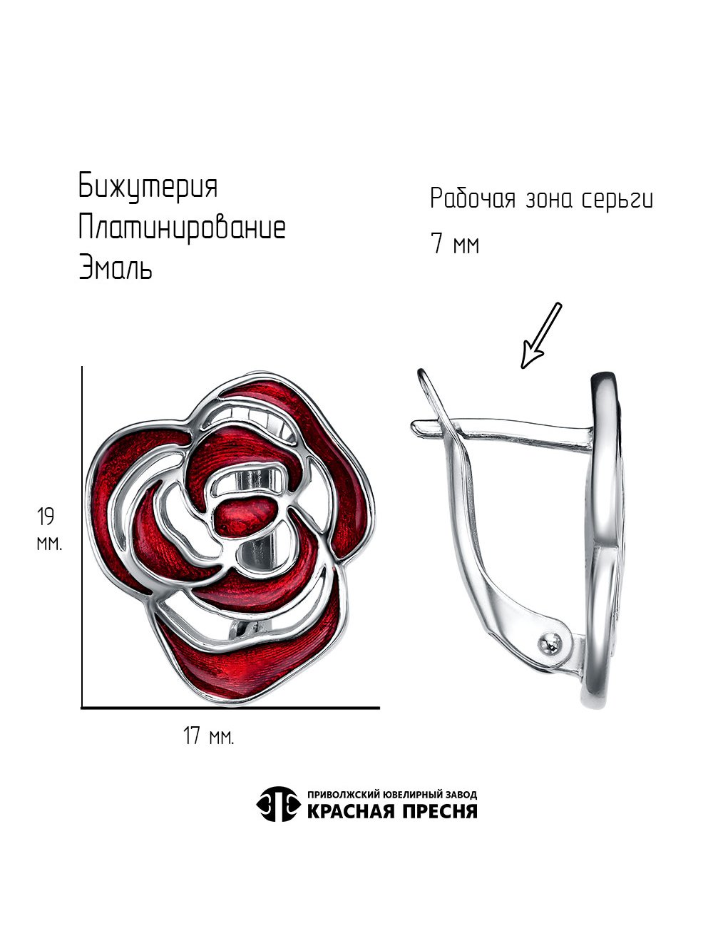 Серьги бижутерия, покрытие - платинирование, отделка - эмаль, без вставок