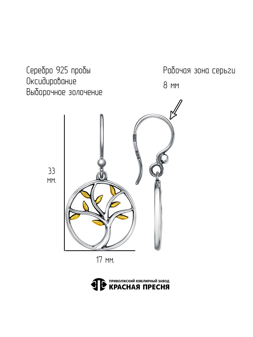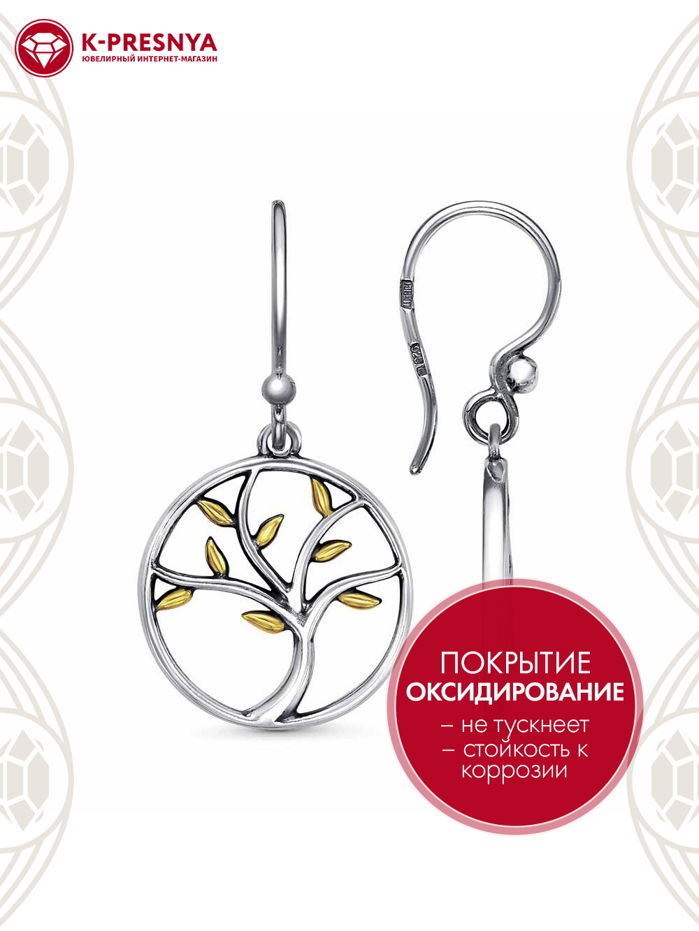 Серьги серебро 925 пробы, покрытие - оксидирование, выборочное золочение, без вставок