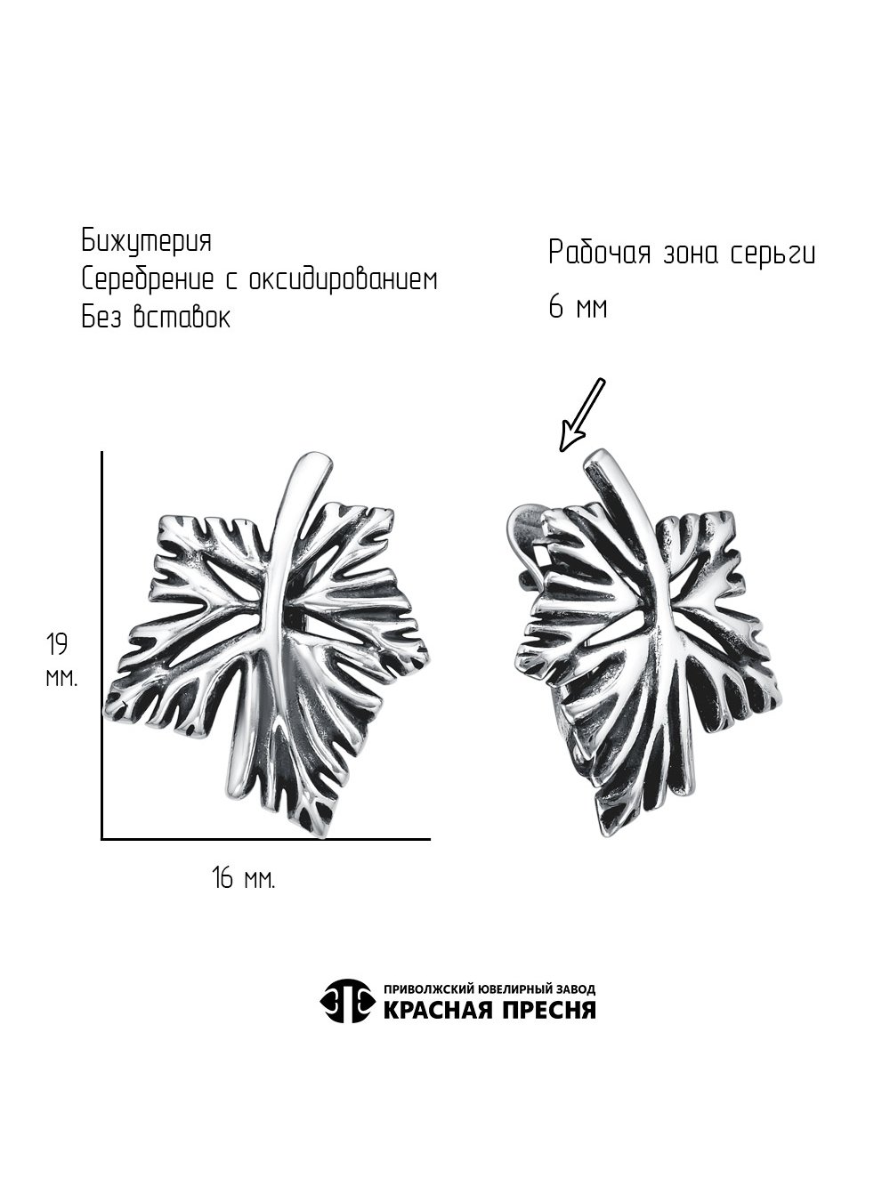 Серьги бижутерия, покрытие - серебрение с оксидированием, без вставок