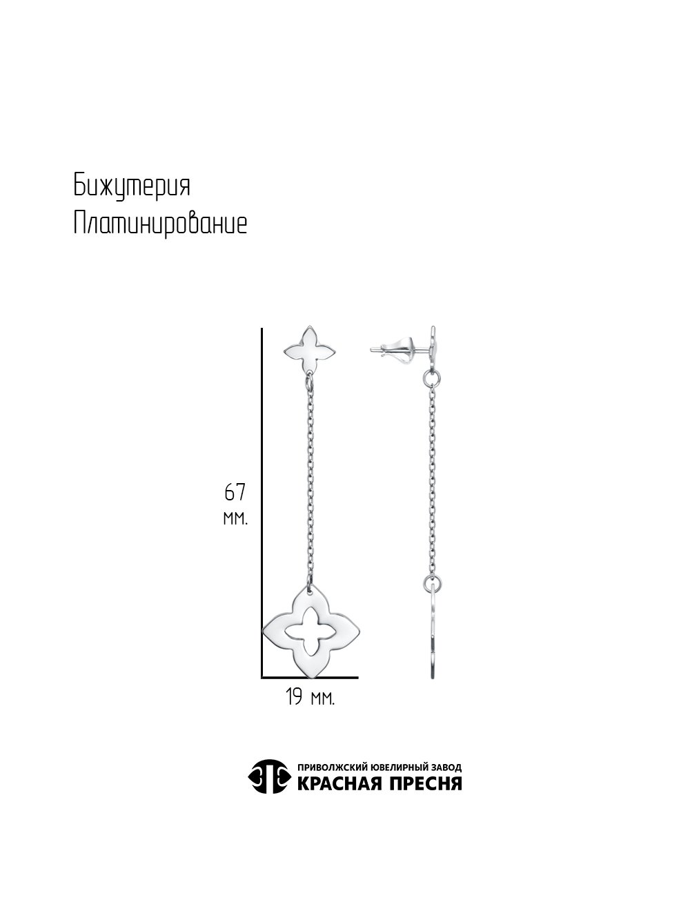 Серьги бижутерия, покрытие - платинирование, без вставок
