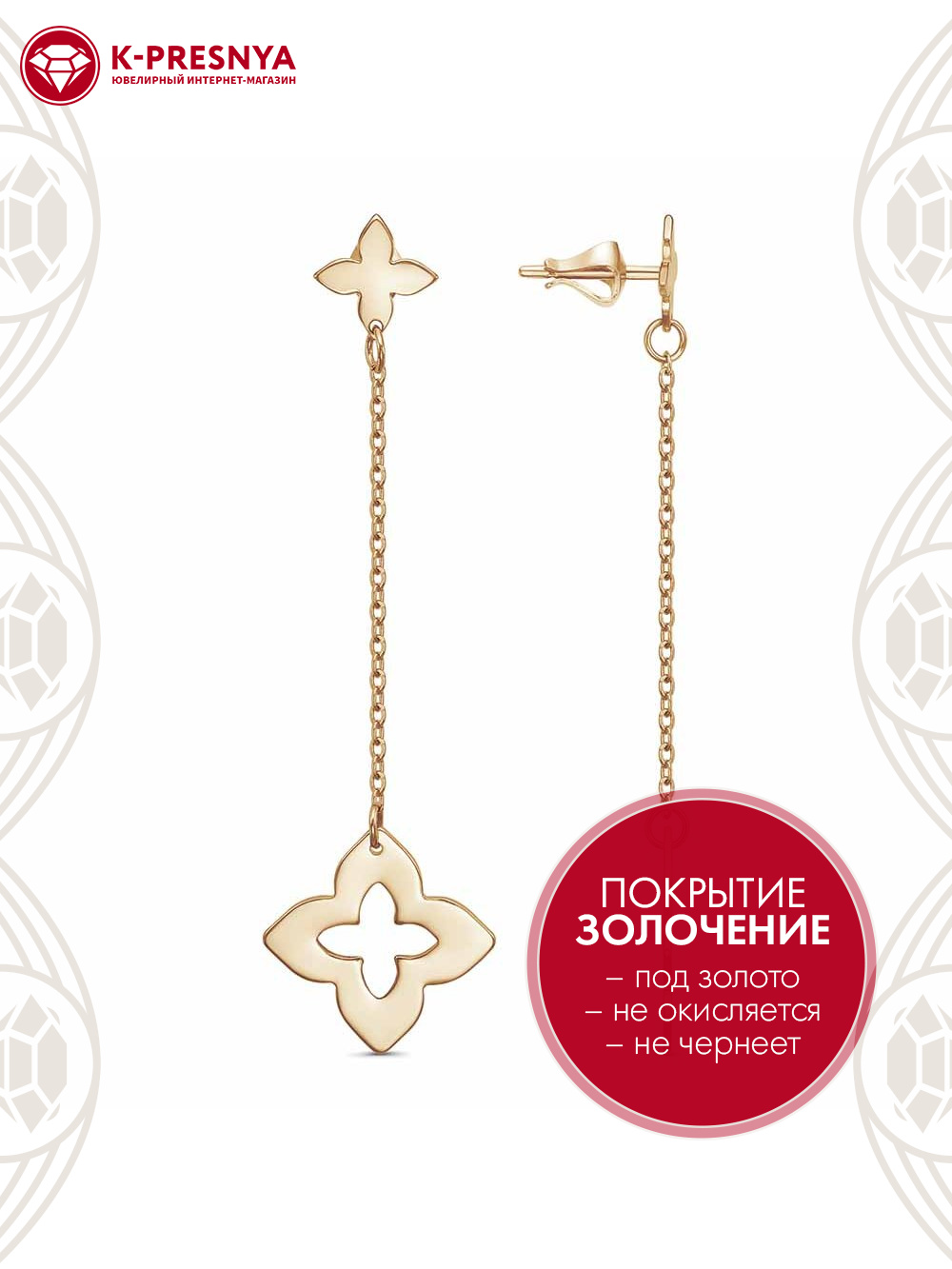 Серьги бижутерия, покрытие - золочение, без вставок