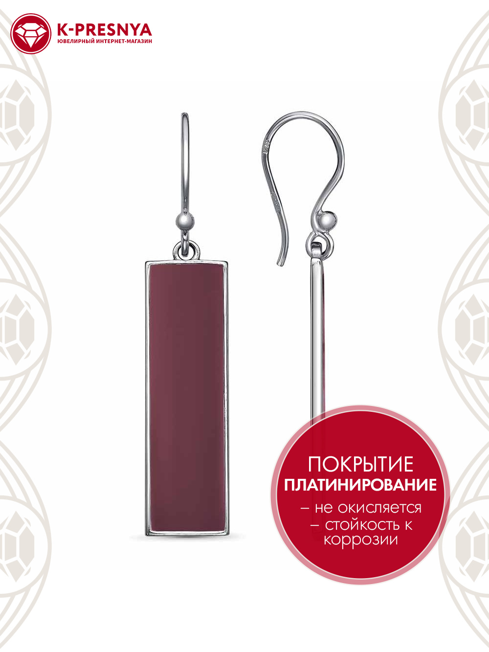 Серьги бижутерия, покрытие - платинирование, отделка - эмаль, без вставок
