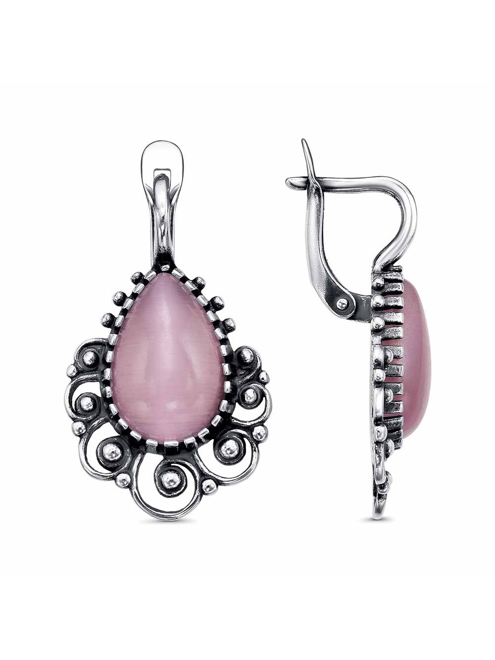 Серьги бижутерия, покрытие - серебрение с оксидированием, вставка - искусственный кошачий глаз