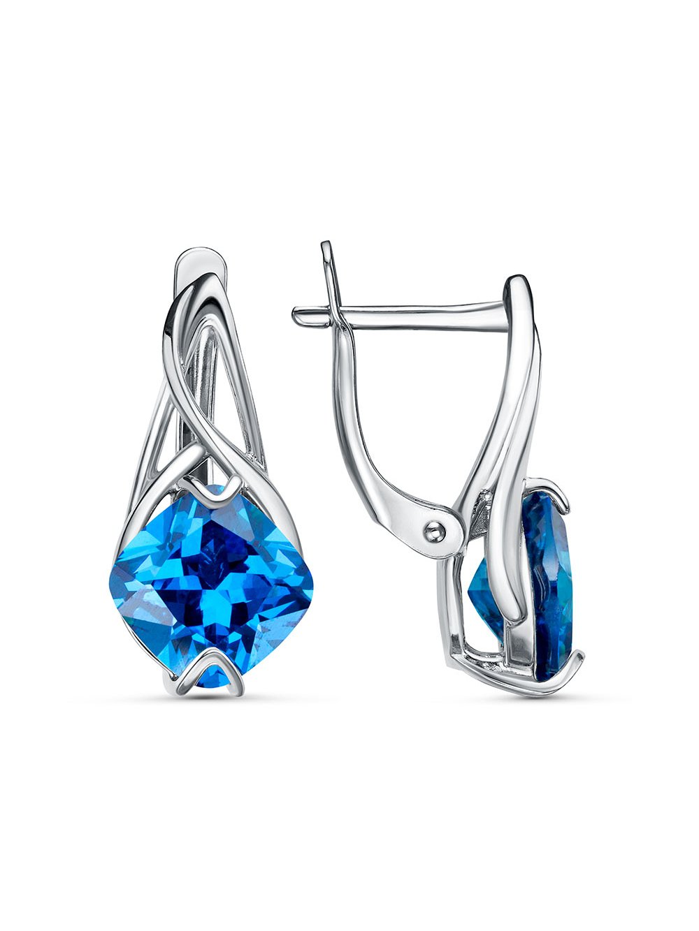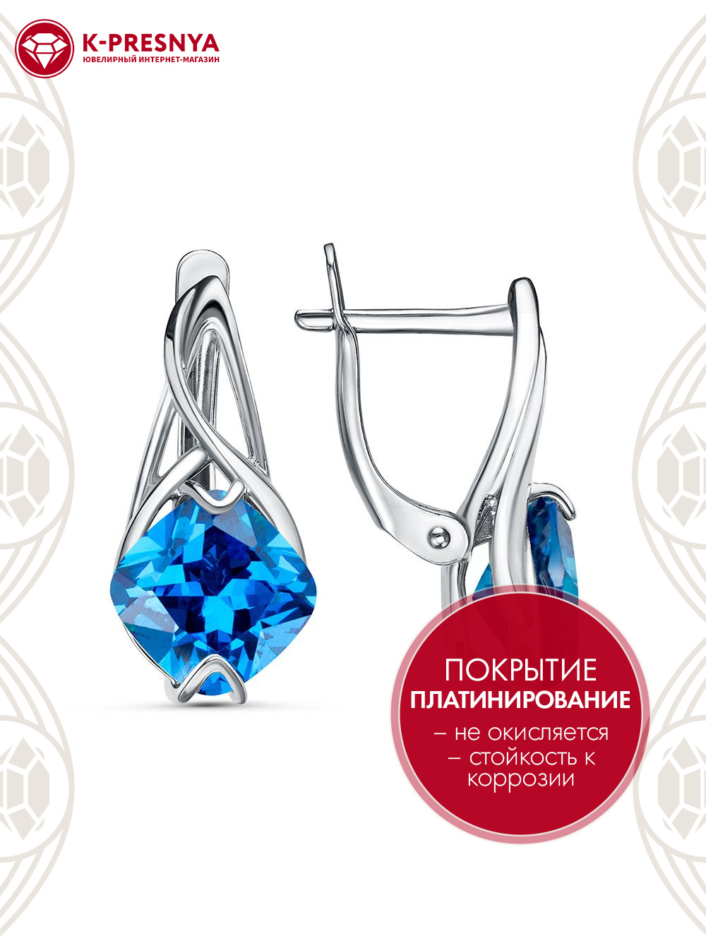 Серьги бижутерия, покрытие - платинирование, вставка - фианит (недрагоценный камень)