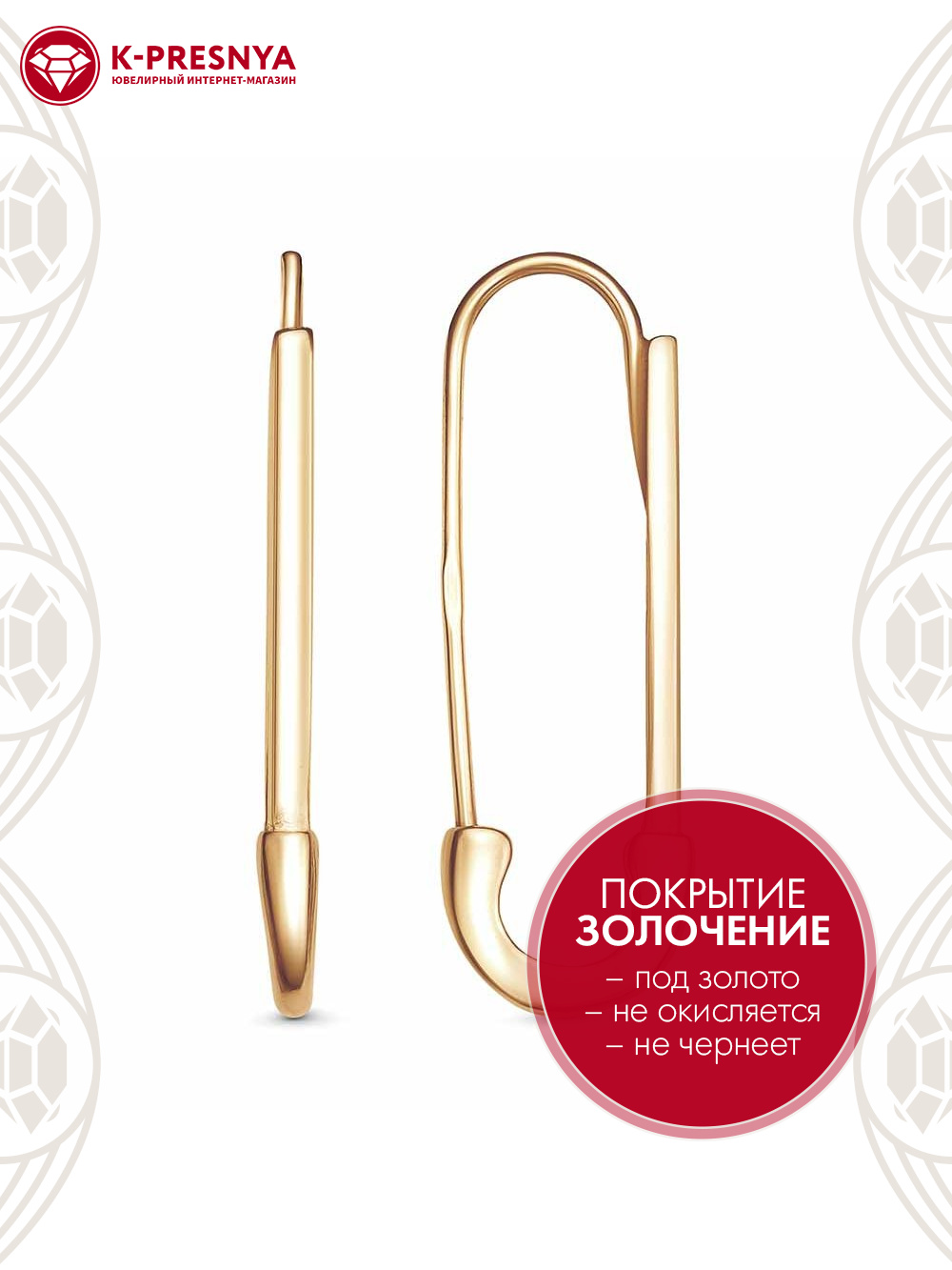 Серьги бижутерия, покрытие - золочение, без вставок