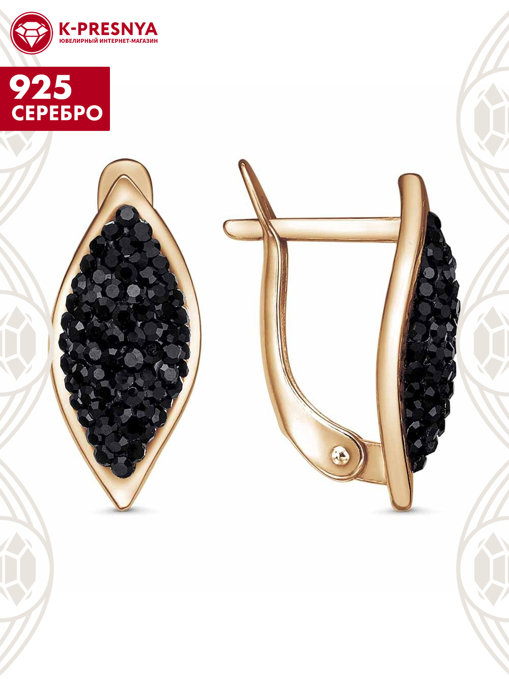 Серьги серебро 925 пробы, покрытие - золочение, вставка - стекло ювелирное preciosa