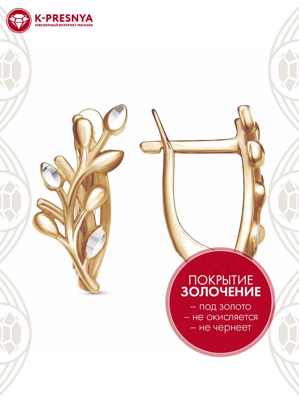Серьги серебро 925 пробы, покрытие - золочение, отделка - алмазная грань, без вставок