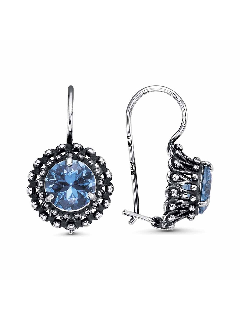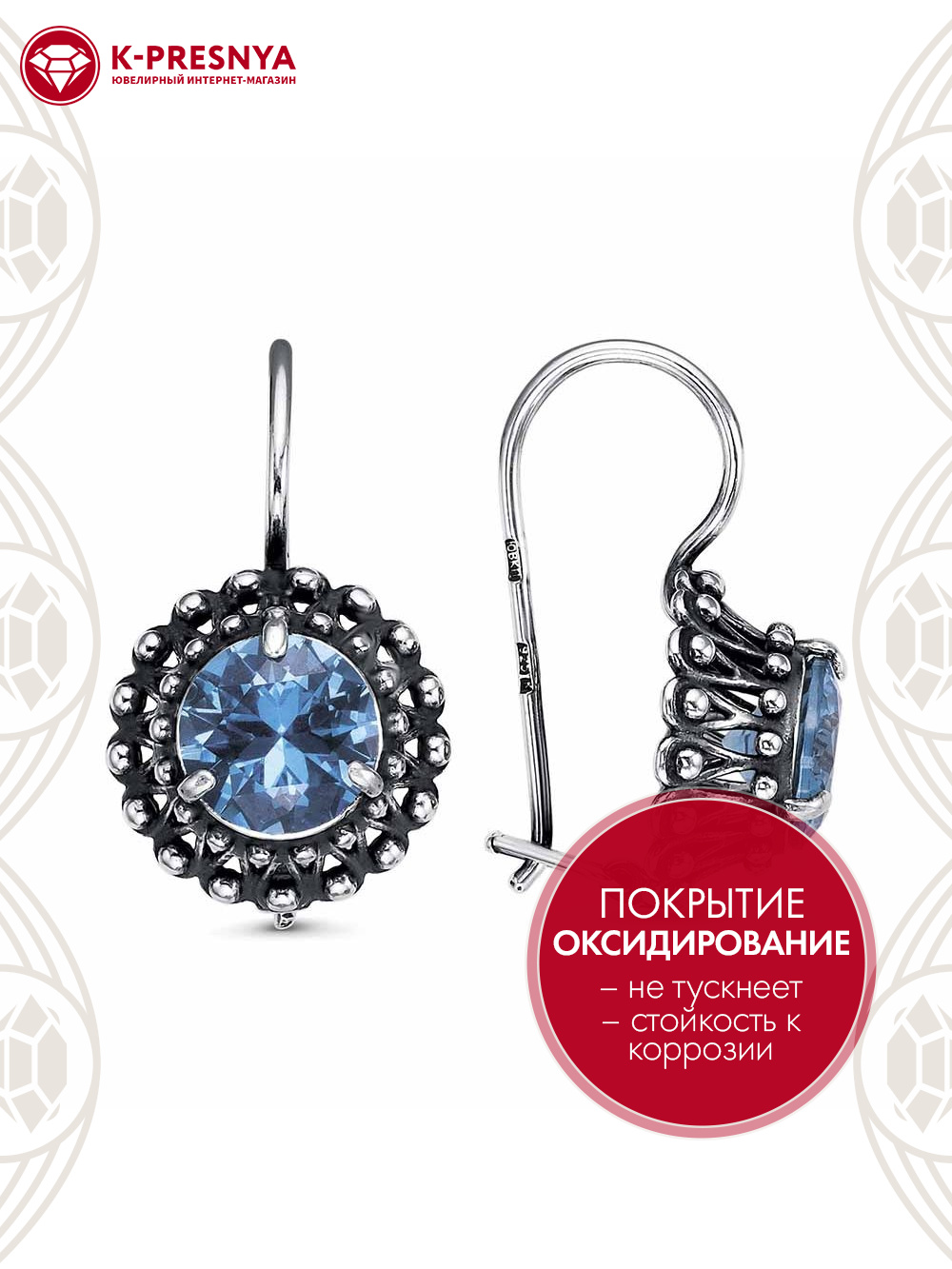 Серьги серебро 925 пробы, покрытие - оксидирование, вставка - искусственная шпинель