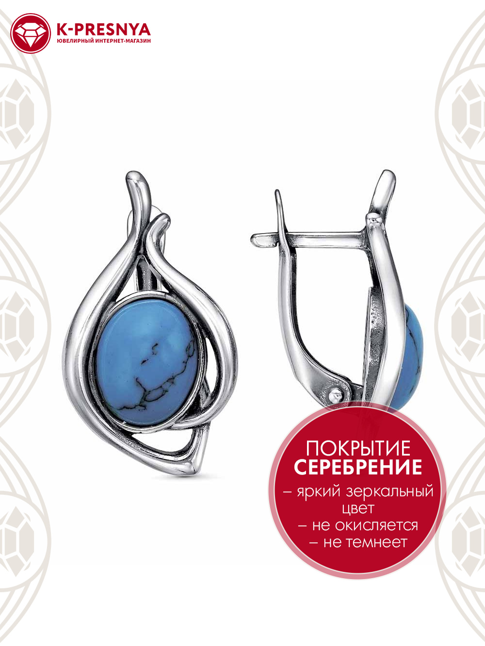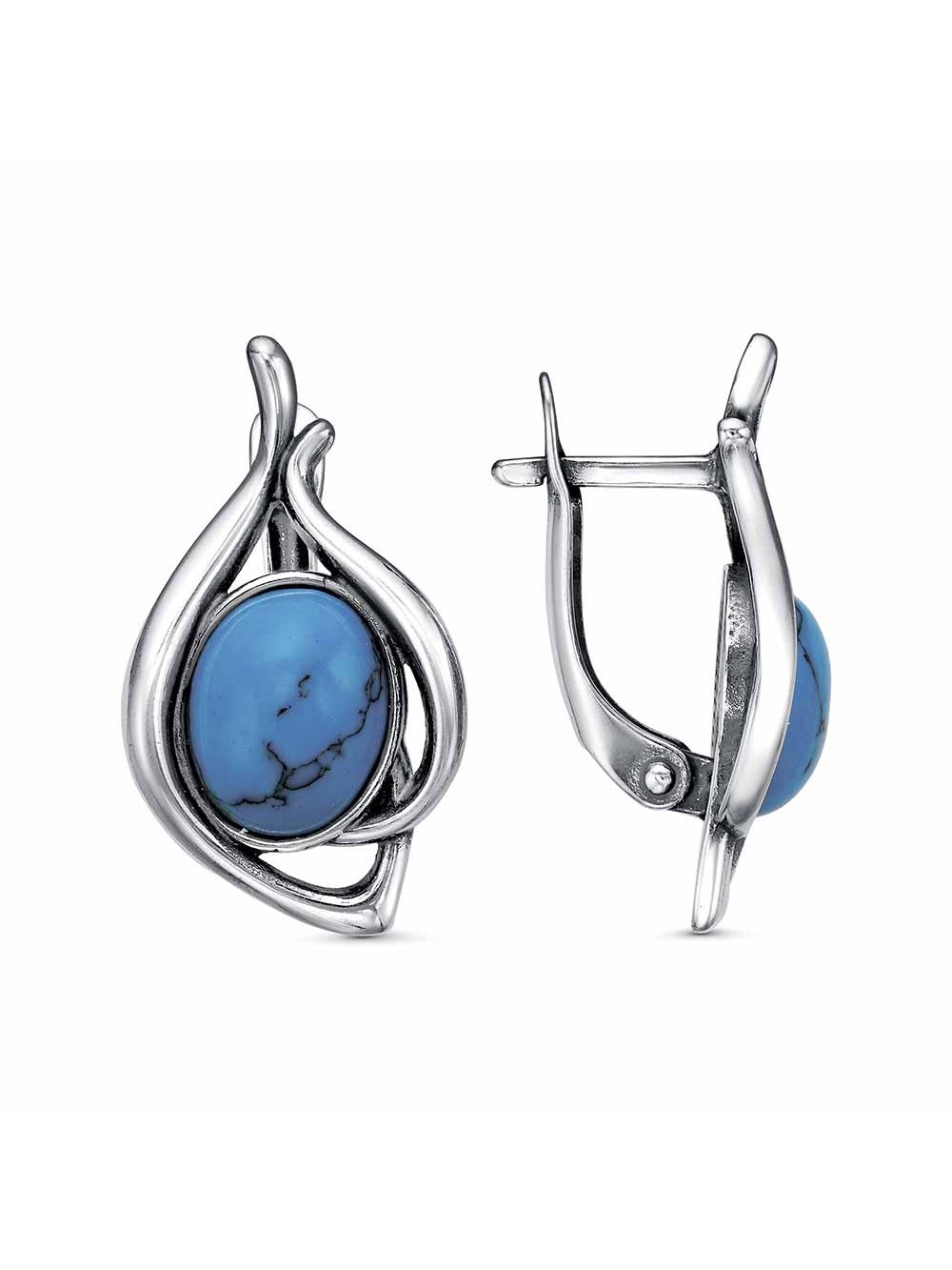 Серьги бижутерия, покрытие - серебрение с оксидированием, вставка - искусственная бирюза