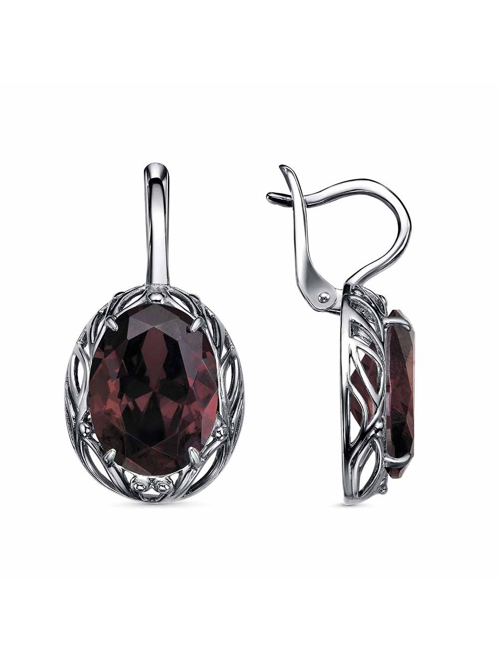 Серьги серебро 925 пробы, покрытие - оксидирование, вставка - фианит (недрагоценный камень)