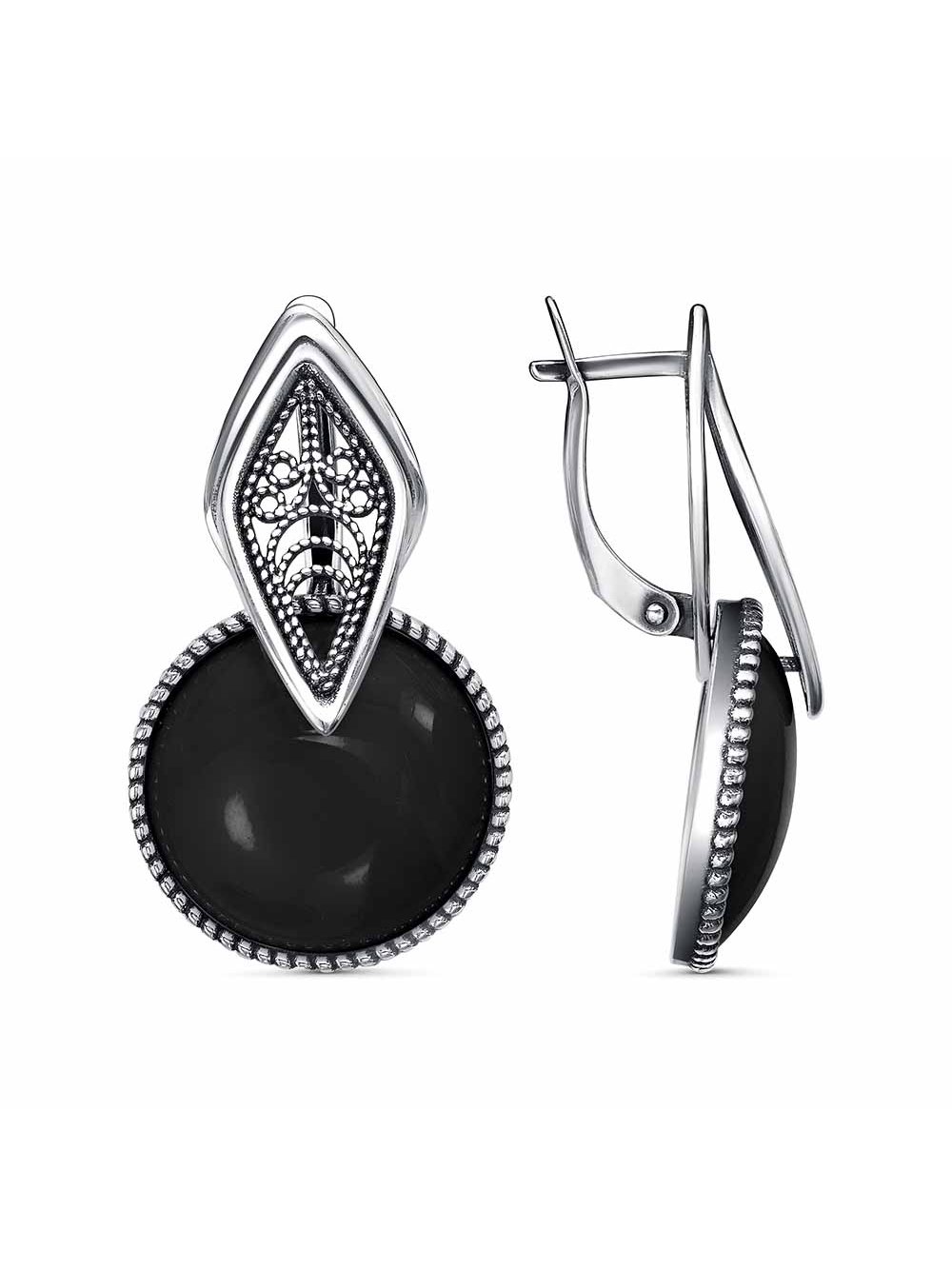 Серьги бижутерия, покрытие - серебрение с оксидированием, вставка - искусственный агат