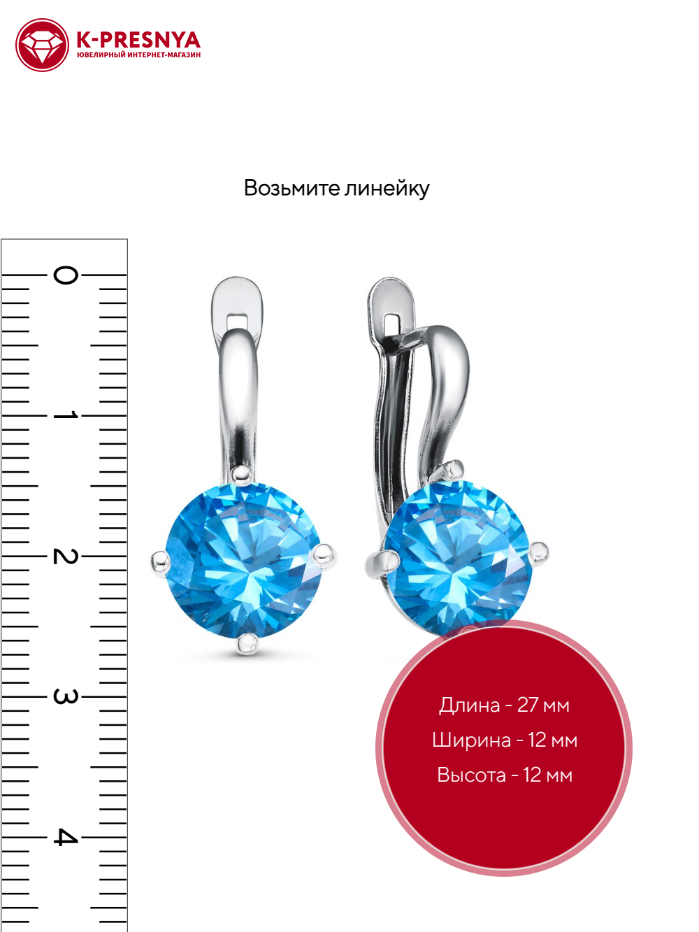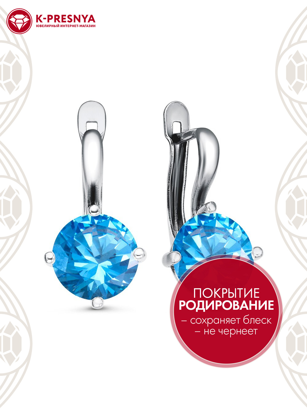 Серьги серебро 925 пробы, покрытие - родирование, вставка - фианит (недрагоценный камень)