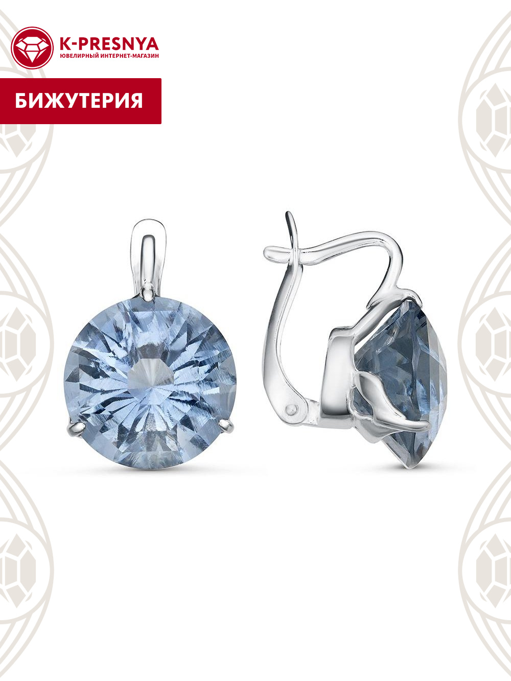 Серьги бижутерия, покрытие - серебрение, вставка - стекло ювелирное собственной огранки