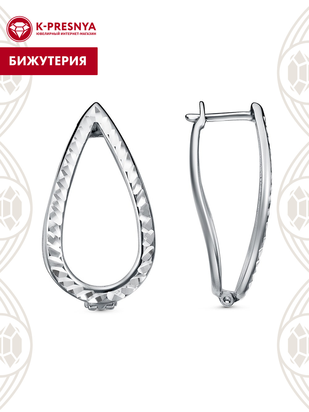 Серьги бижутерия, покрытие - серебрение с оксидированием, без вставок