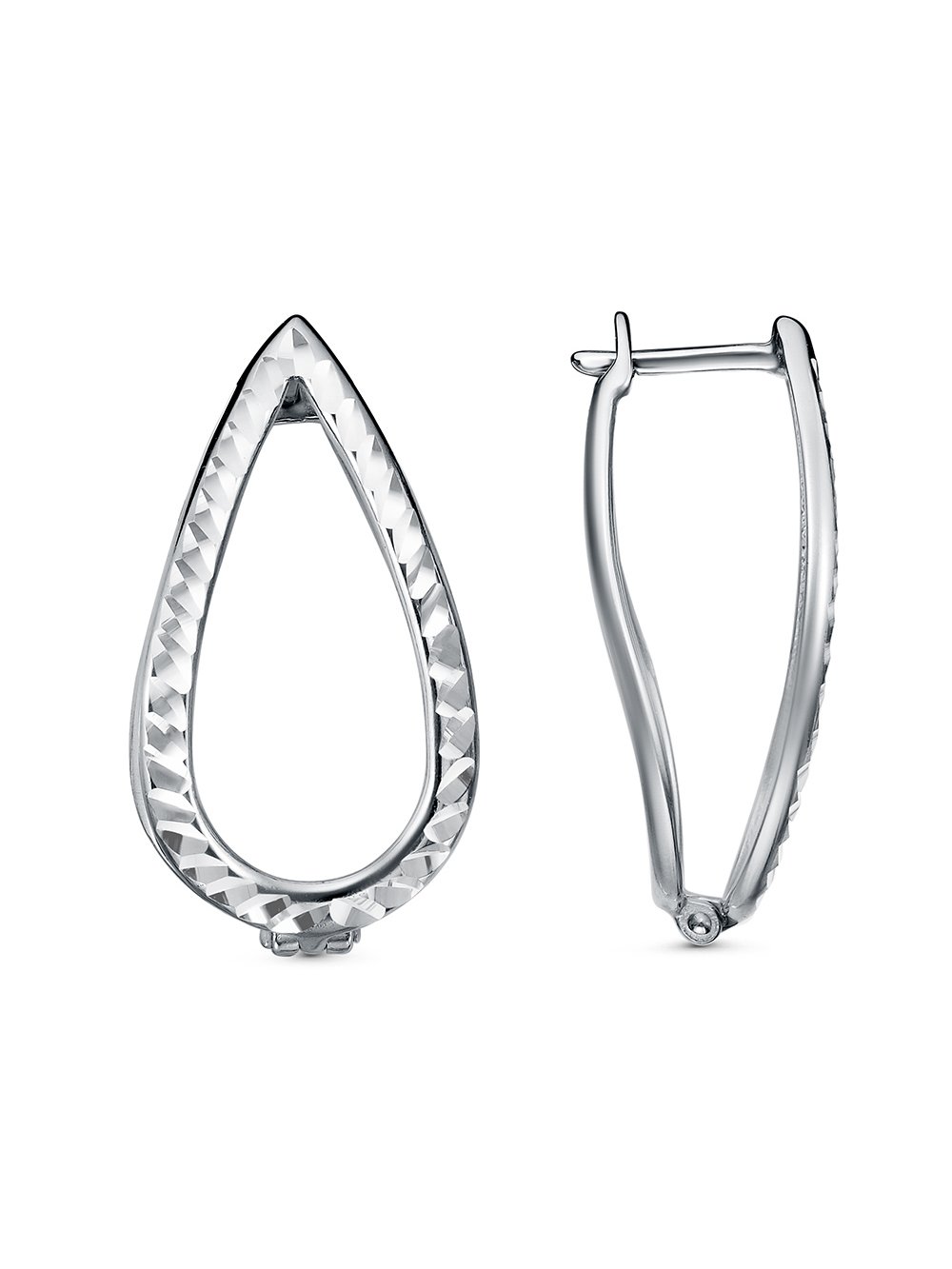 Серьги серебро 925 пробы, покрытие - родирование, отделка - алмазная грань, без вставок