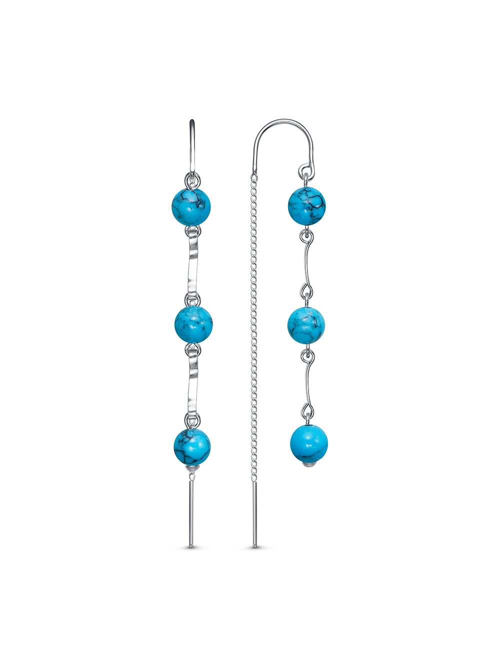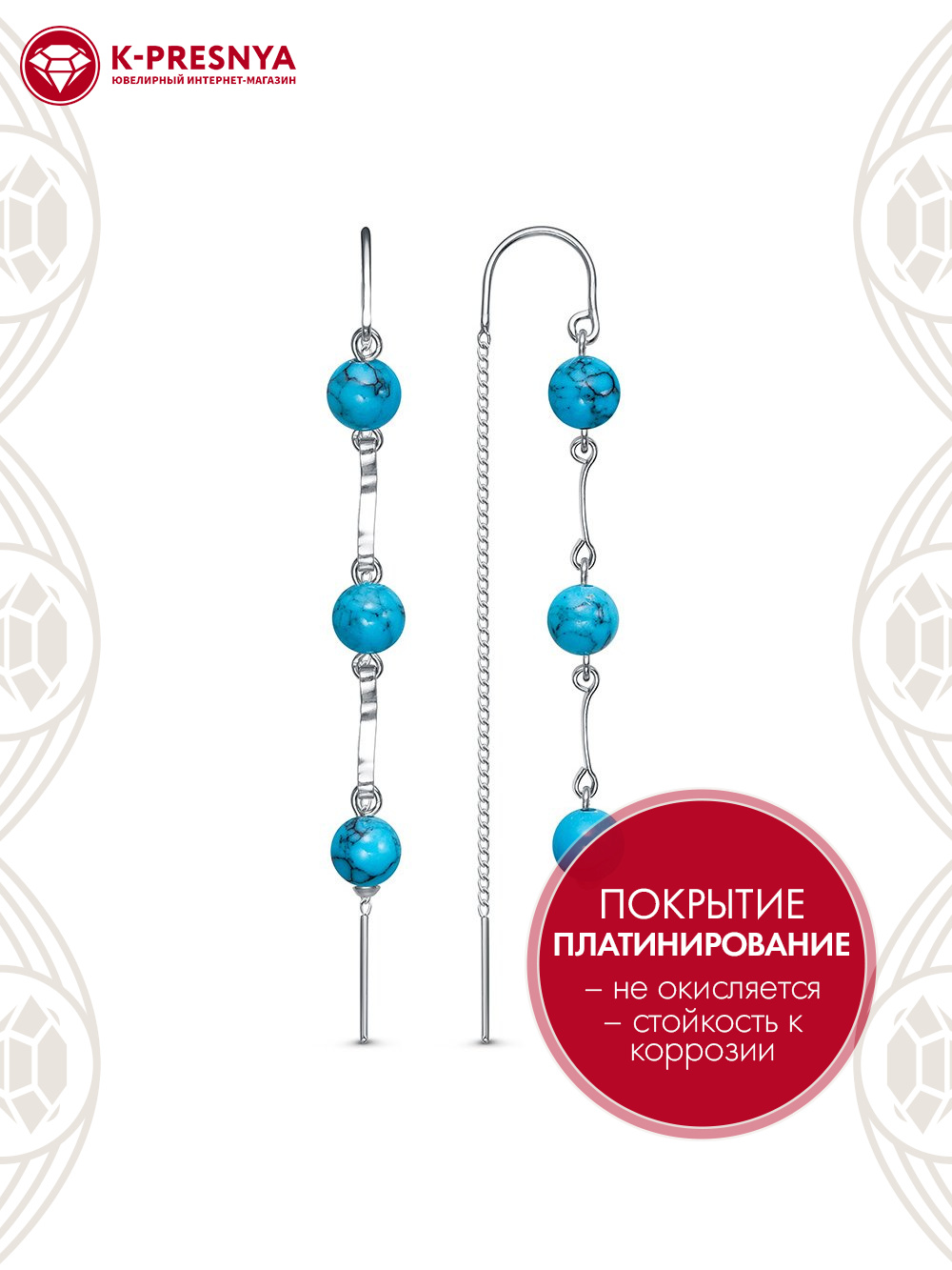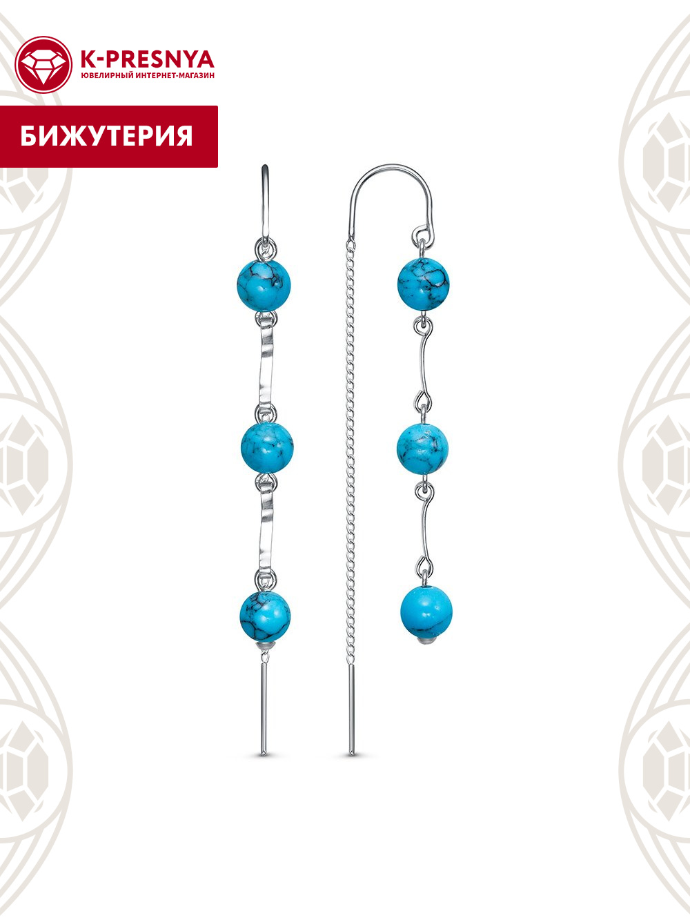 Серьги бижутерия, покрытие - платинирование, вставка - искусственная бирюза