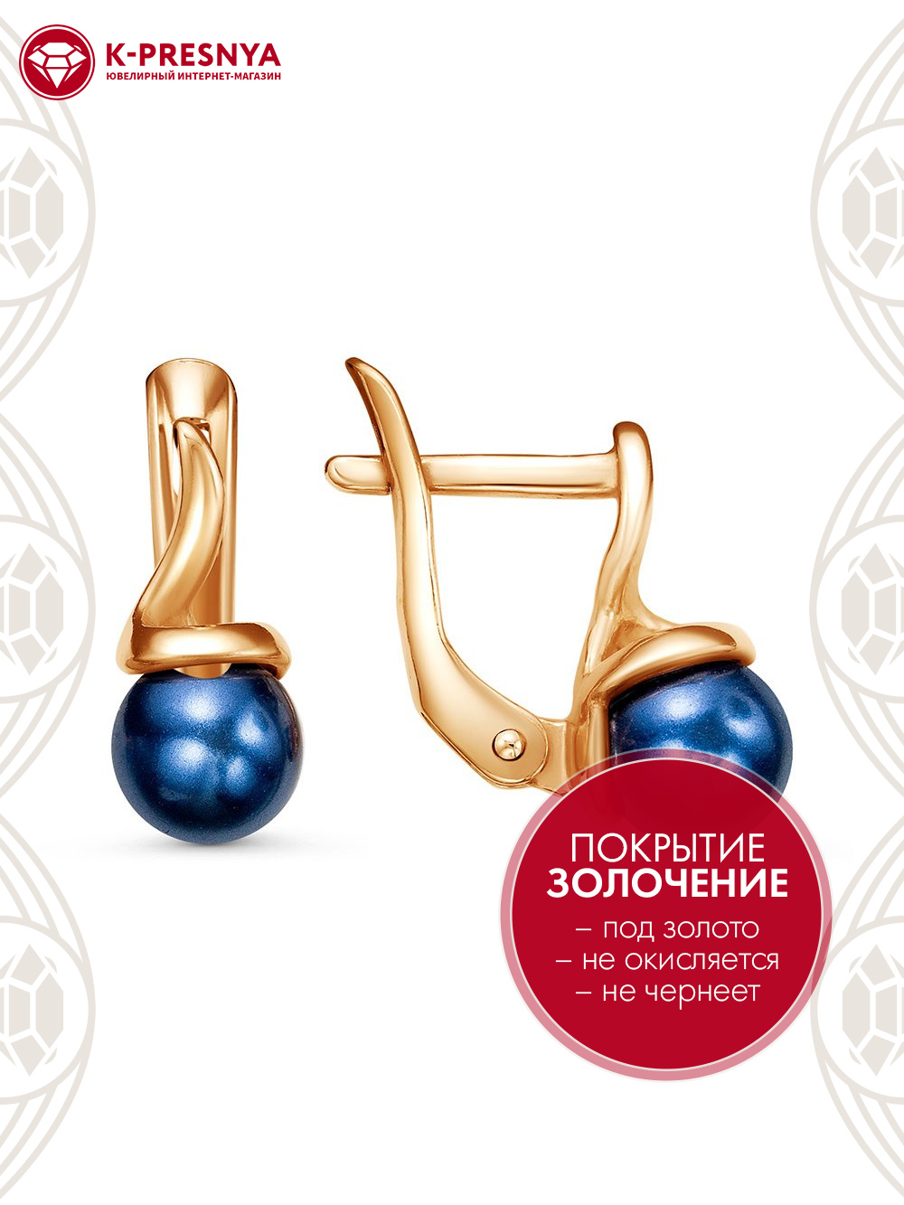 Серьги бижутерия, покрытие - золочение, вставка - имитация жемчуга
