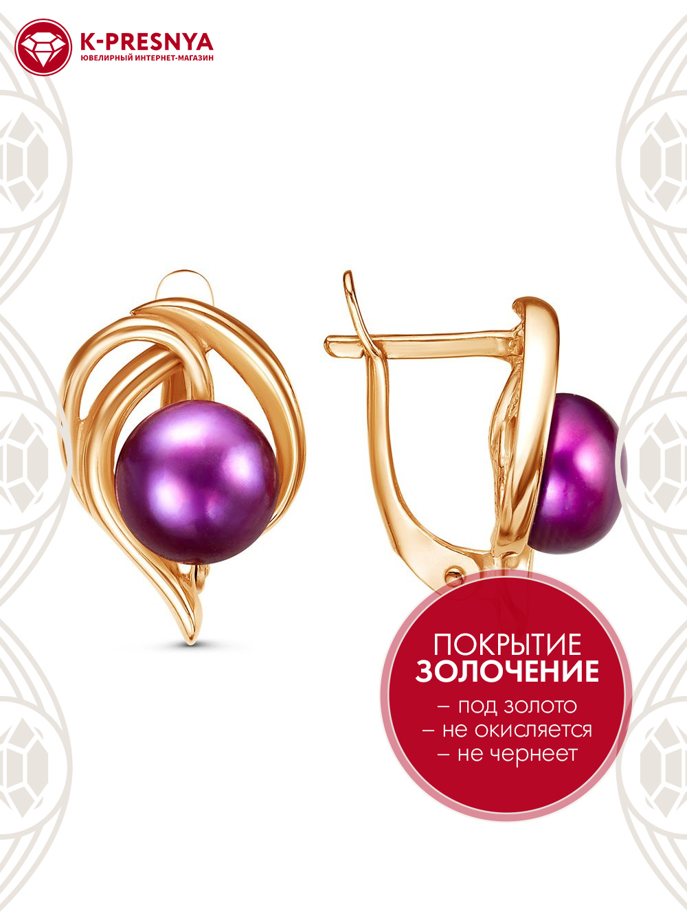 Серьги бижутерия, покрытие - золочение, вставка - культивированный жемчуг