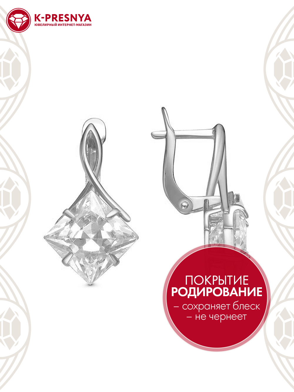 Серьги серебро 925 пробы, покрытие - родирование, вставка - горный хрусталь