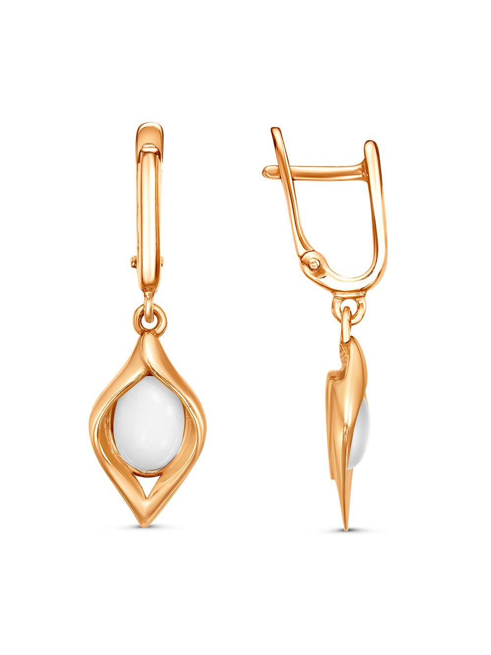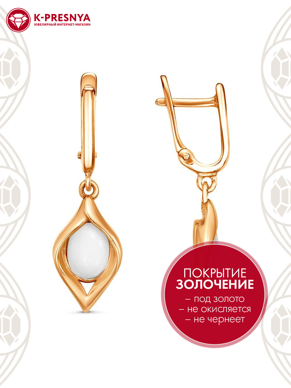 Серьги бижутерия, покрытие - золочение, вставка - искусственный агат белый