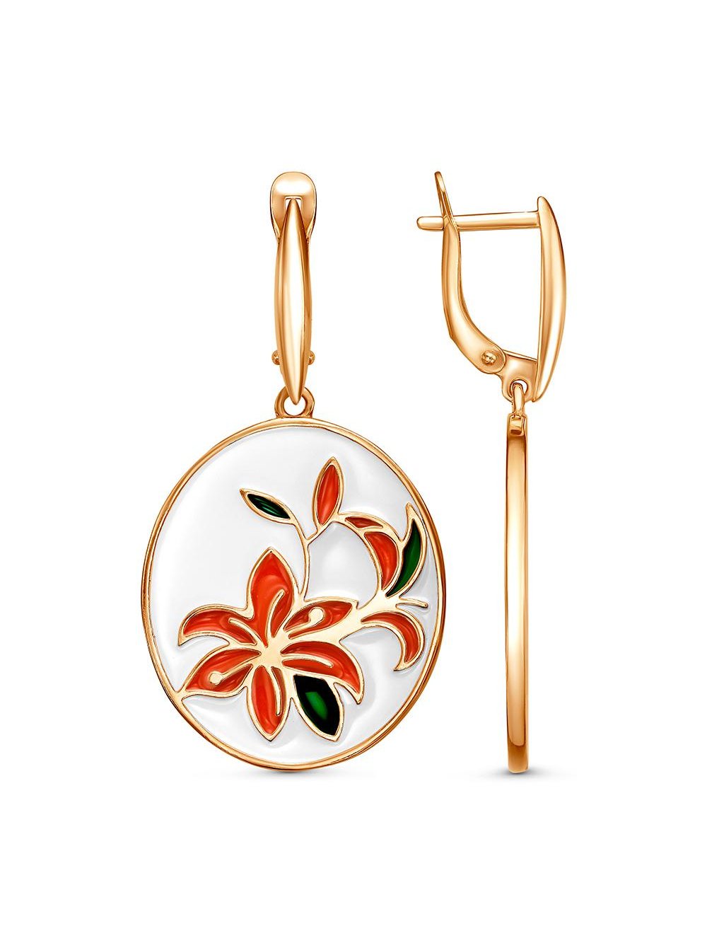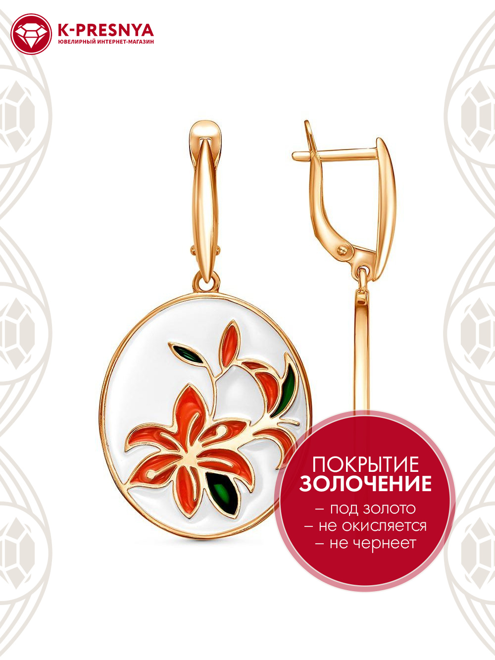 Серьги бижутерия, покрытие - золочение, отделка - эмаль, без вставок