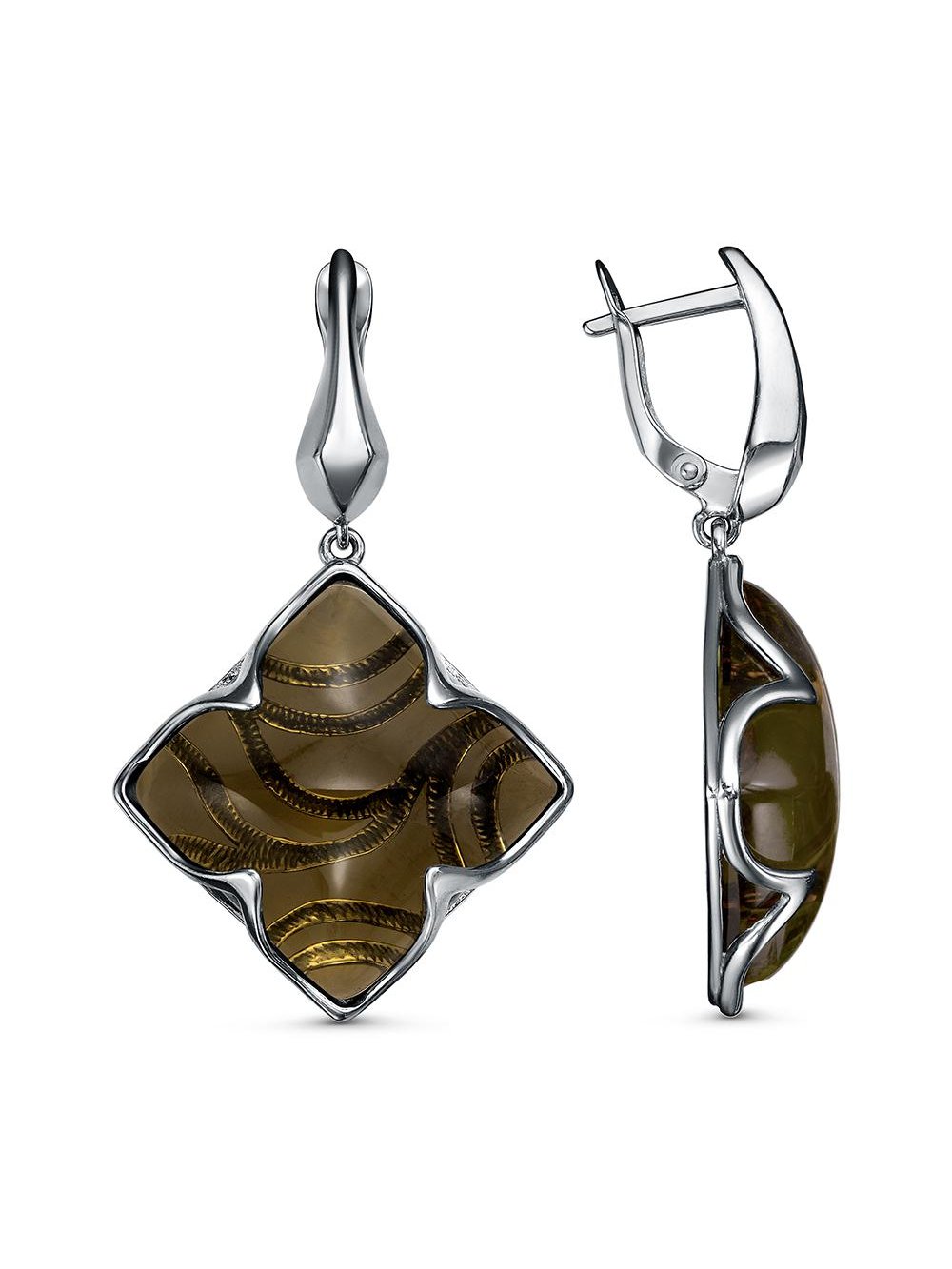 Серьги бижутерия, покрытие - серебрение с оксидированием, вставка - стекло ювелирное собственной огранки
