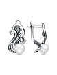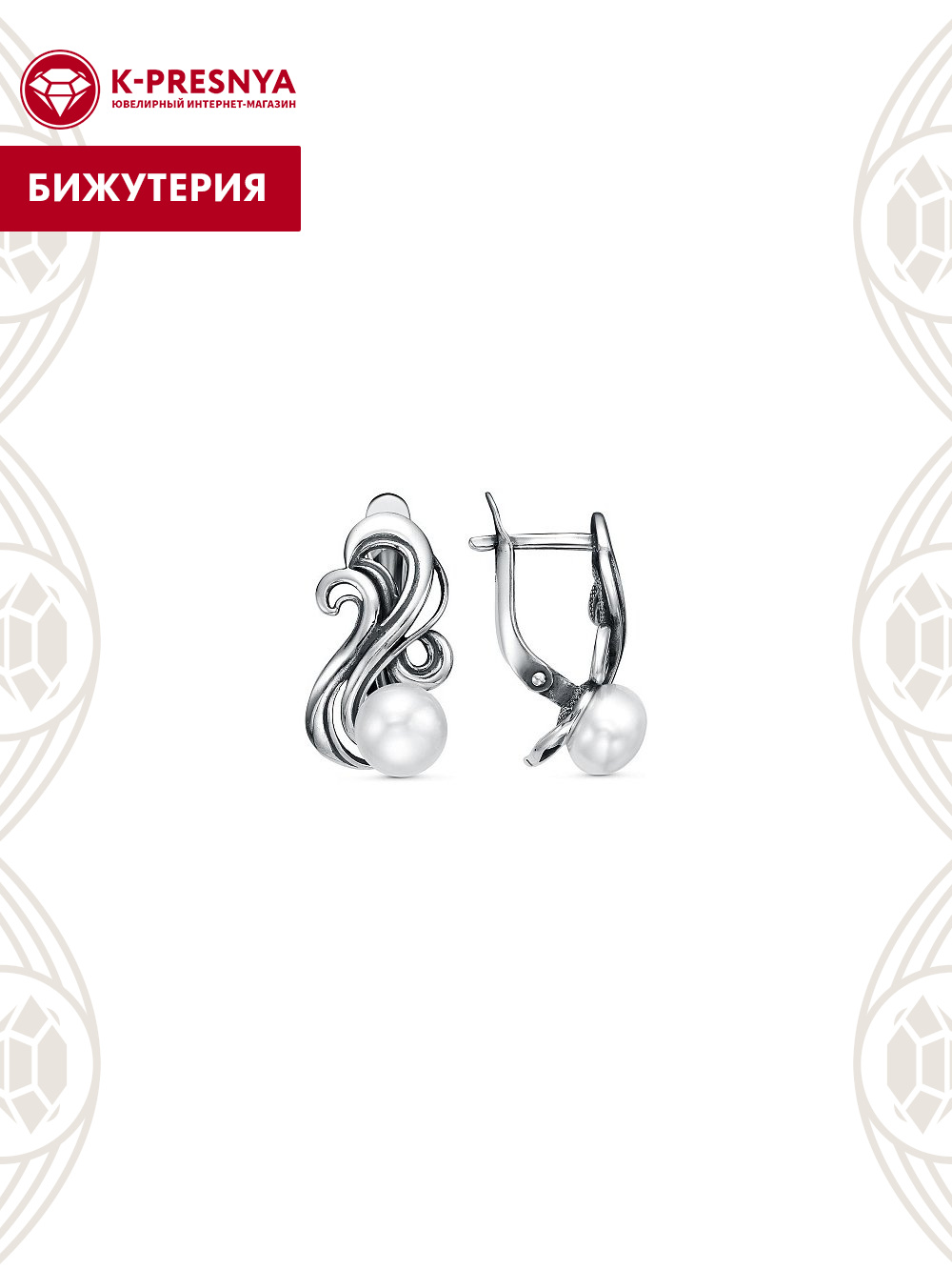 Серьги бижутерия, покрытие - серебрение с оксидированием, вставка - культивированный жемчуг