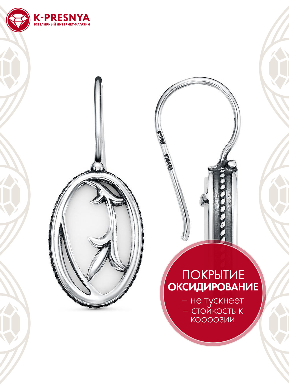 Серьги серебро 925 пробы, покрытие - оксидирование, вставка - стекло ювелирное собственной огранки