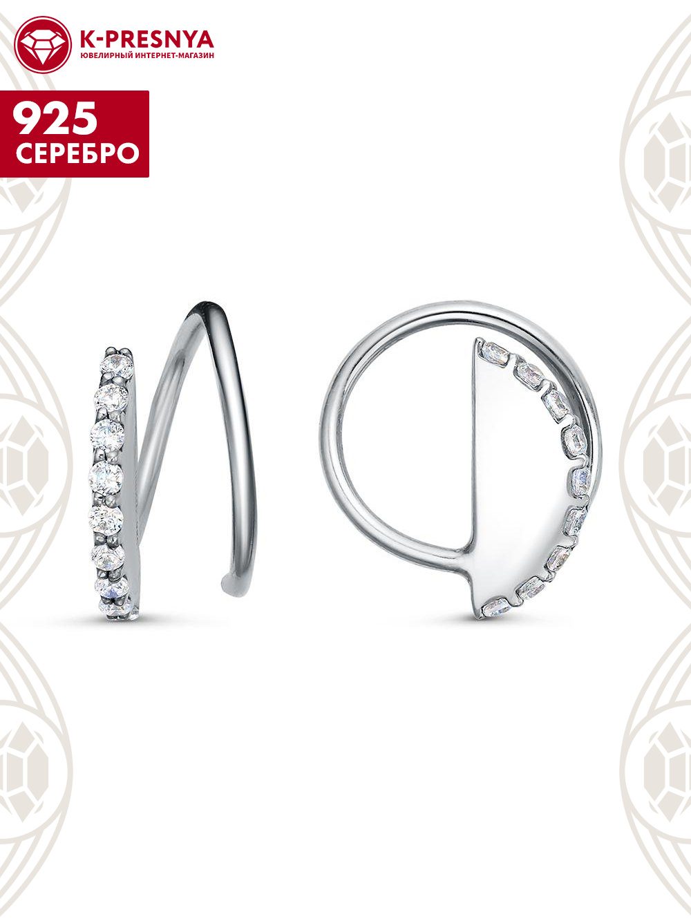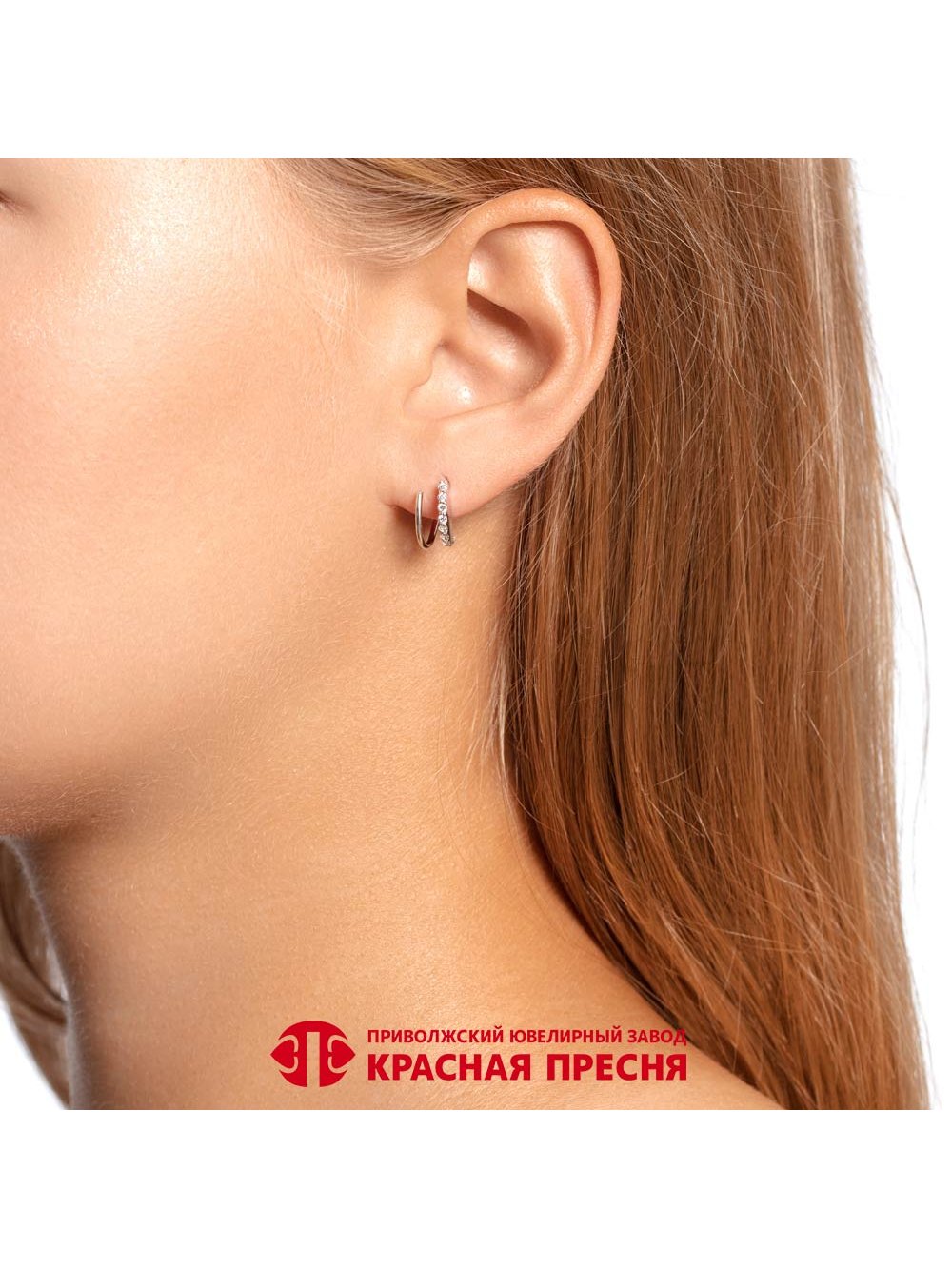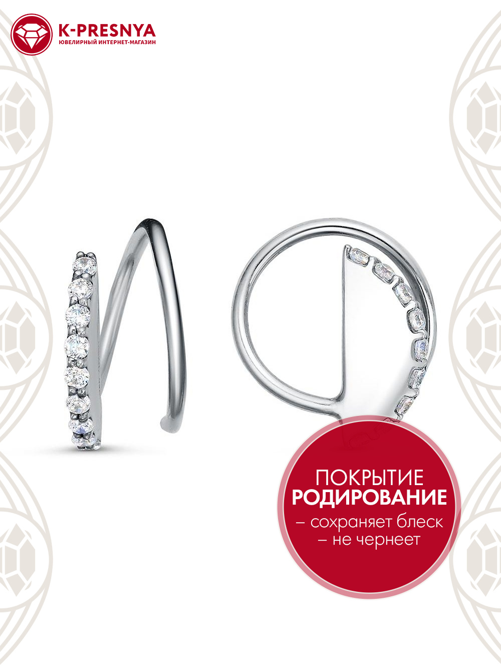 Серьга серебро 925 пробы, покрытие - родирование, вставка - фианит (недрагоценный камень)