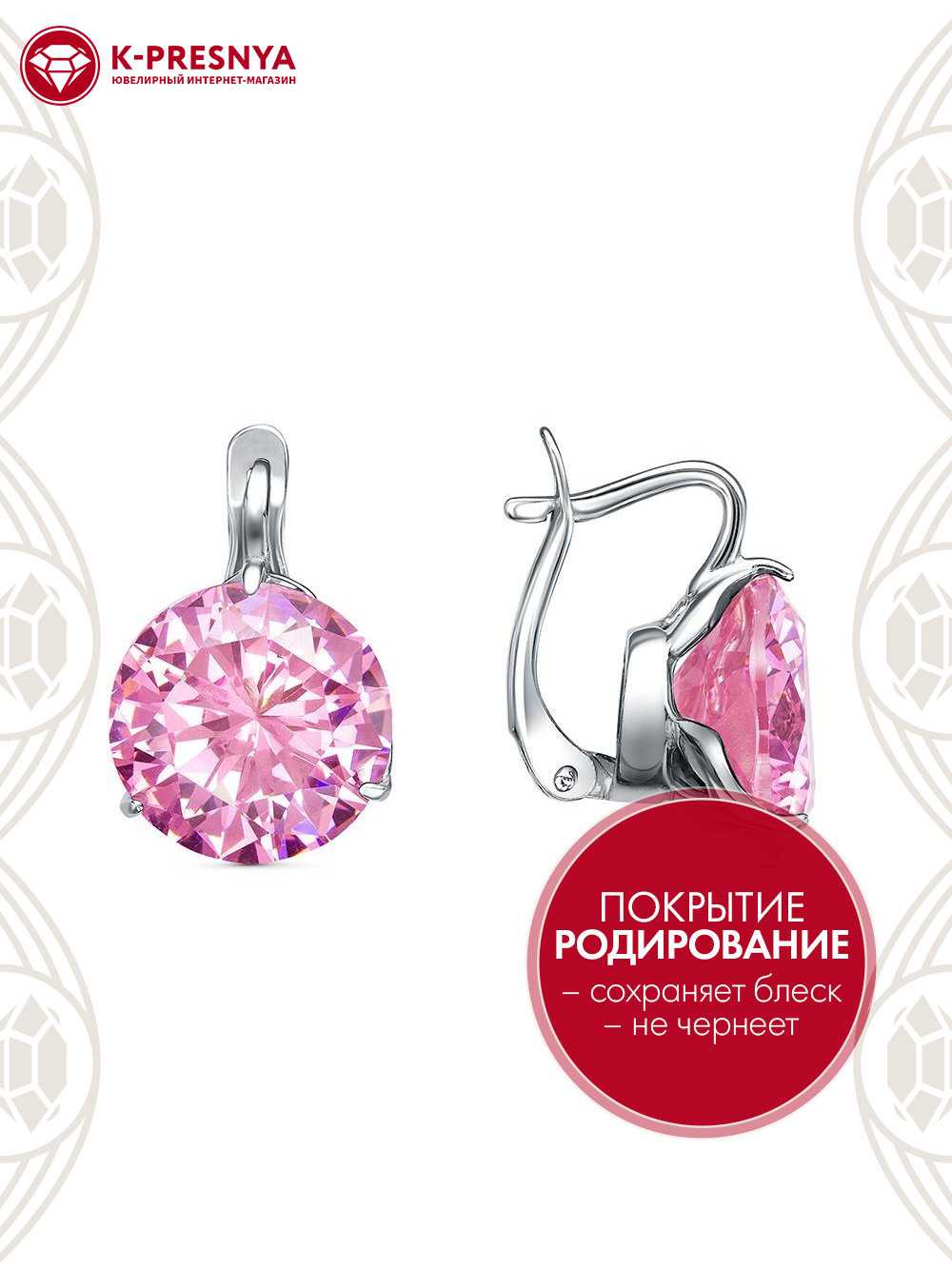 Серьги серебро 925 пробы, покрытие - родирование, вставка - фианит (недрагоценный камень)