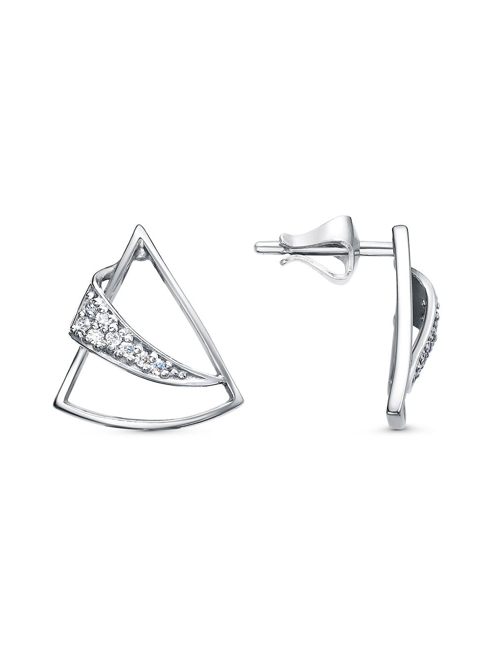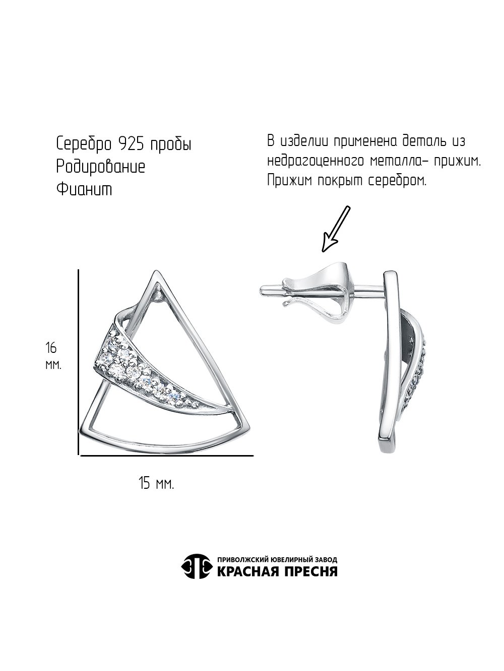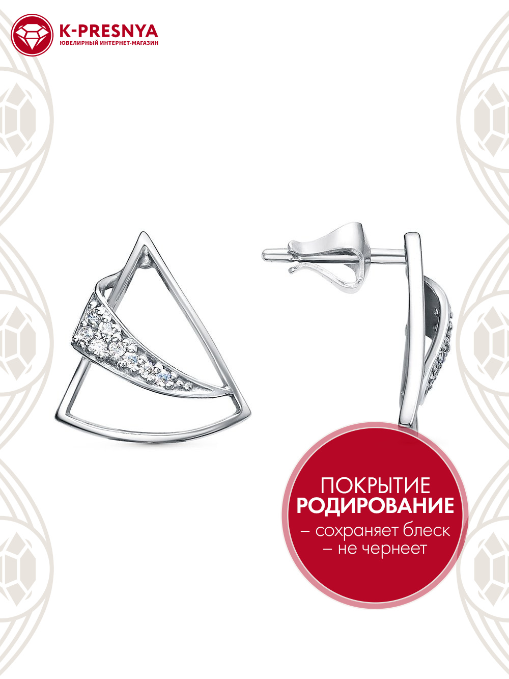 Серьги серебро 925 пробы, покрытие - родирование, вставка - фианит (недрагоценный камень)