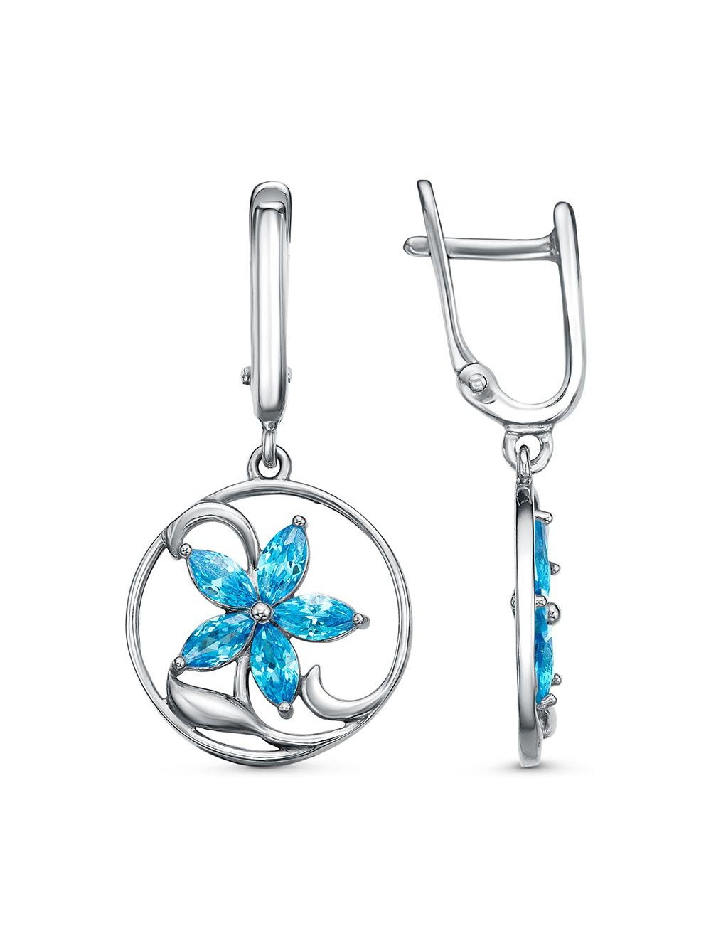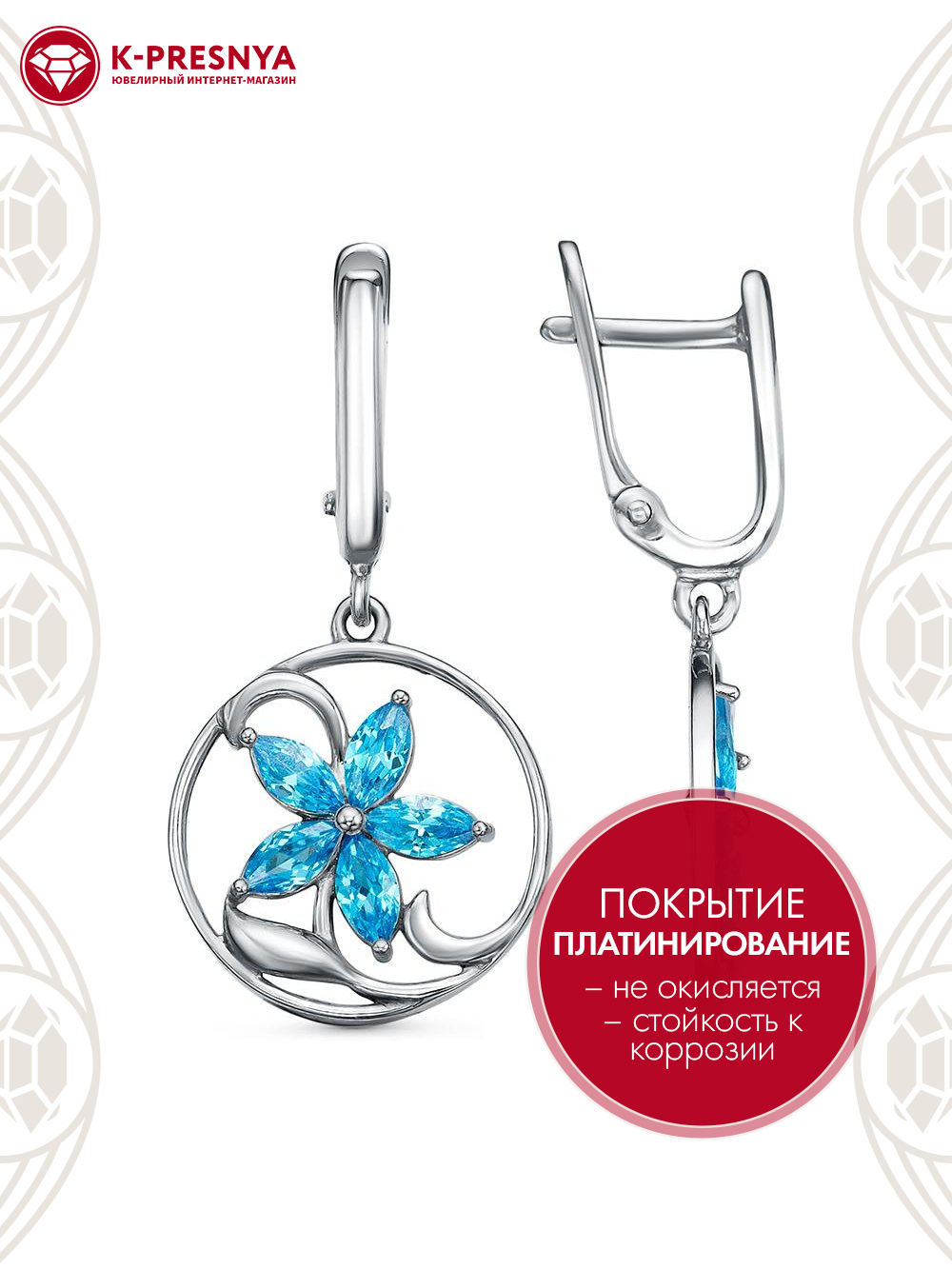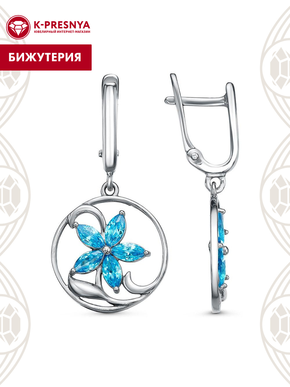 Серьги бижутерия, покрытие - платинирование, вставка - фианит (недрагоценный камень)