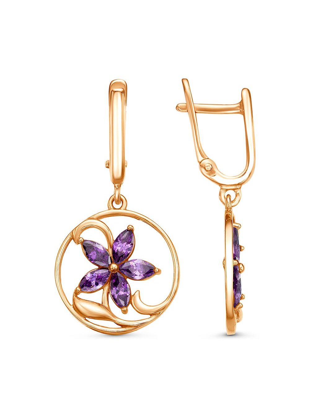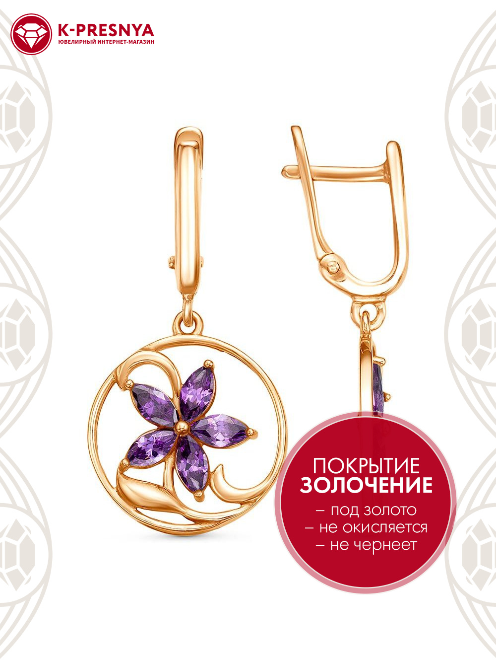 Серьги бижутерия, покрытие - золочение, вставка - фианит (недрагоценный камень)