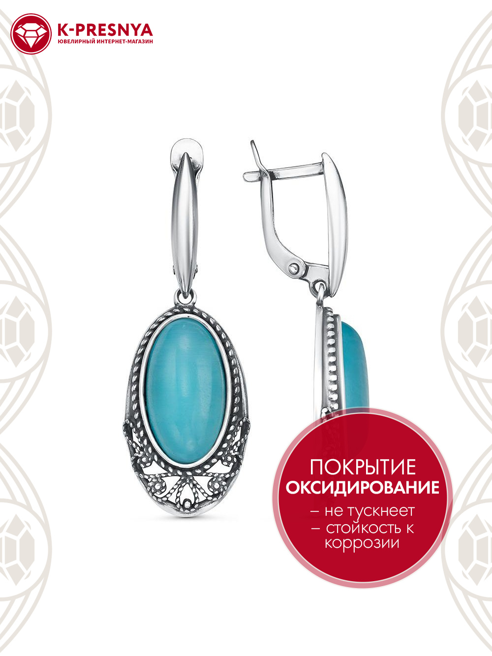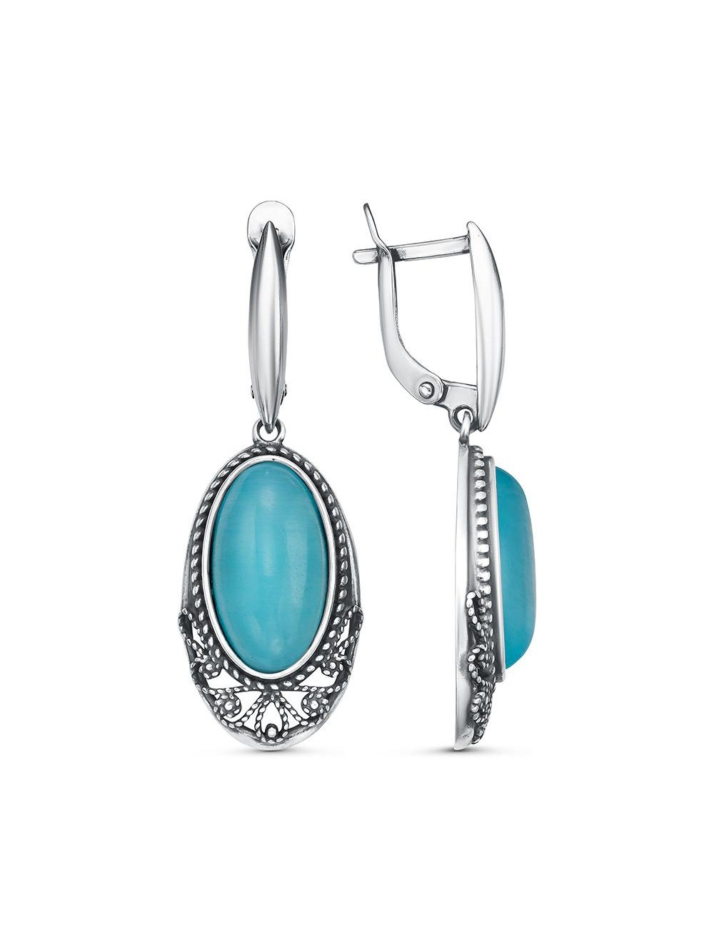 Серьги серебро 925 пробы, покрытие - оксидирование, вставка - искусственный кошачий глаз