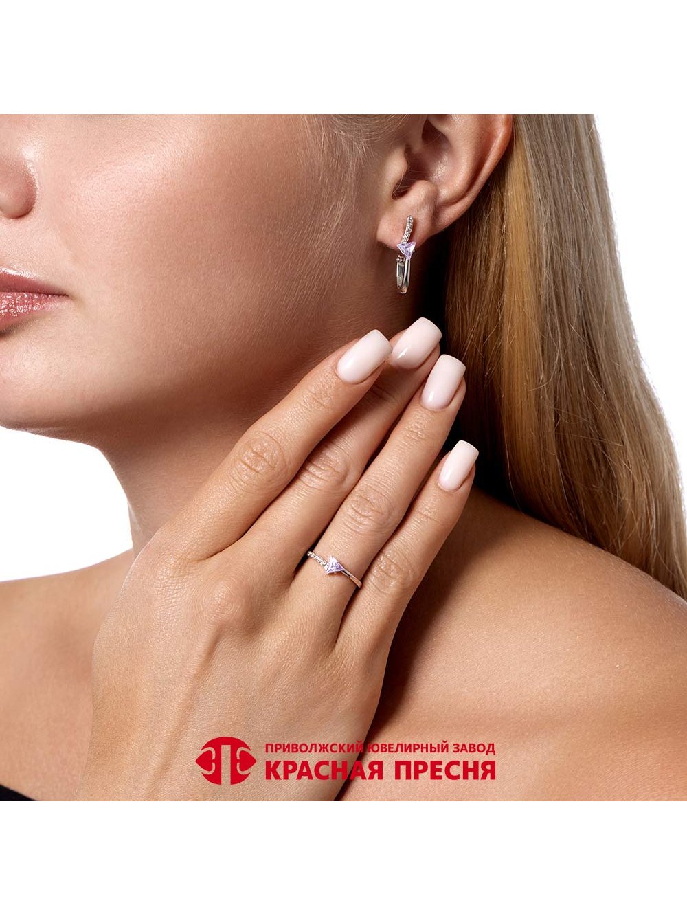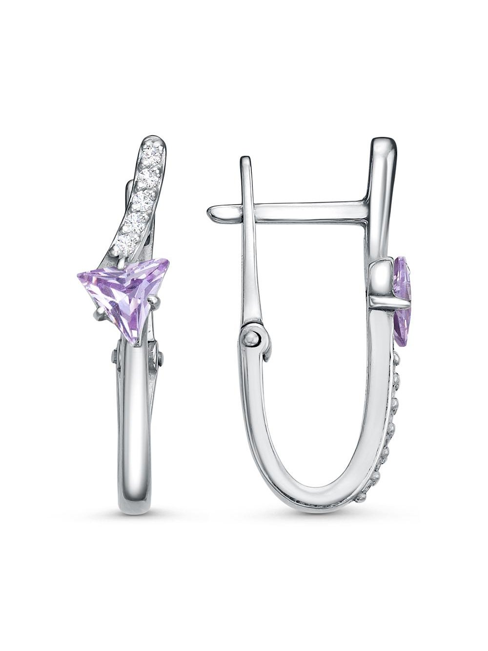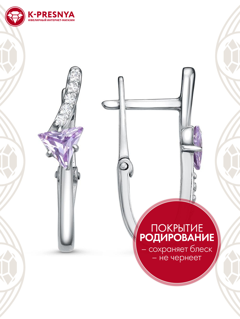 Серьги серебро 925 пробы, покрытие - родирование, вставка - фианит (недрагоценный камень)