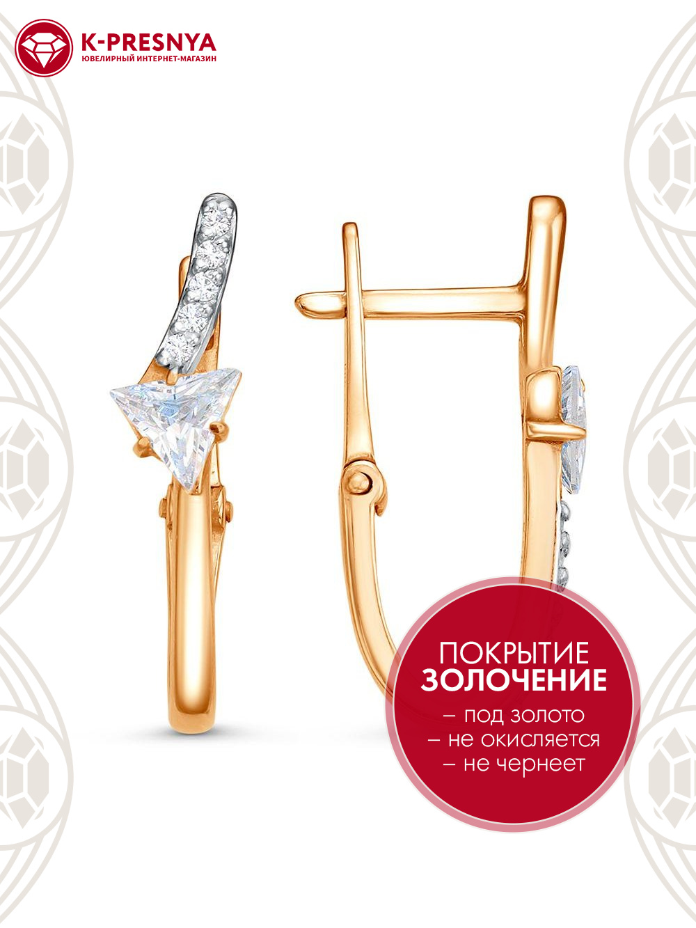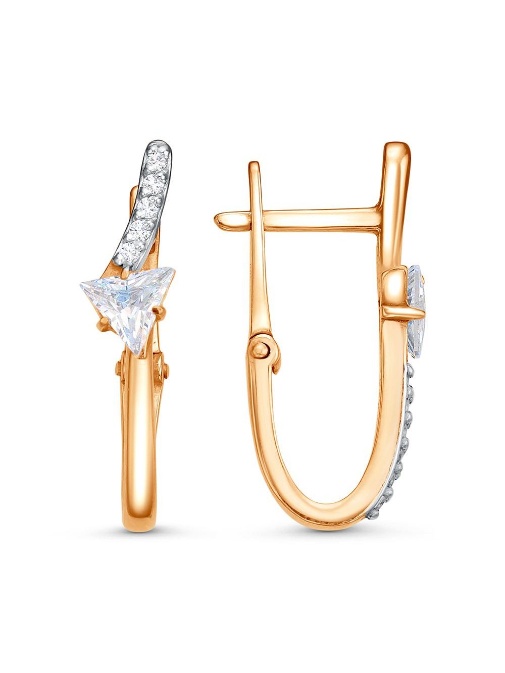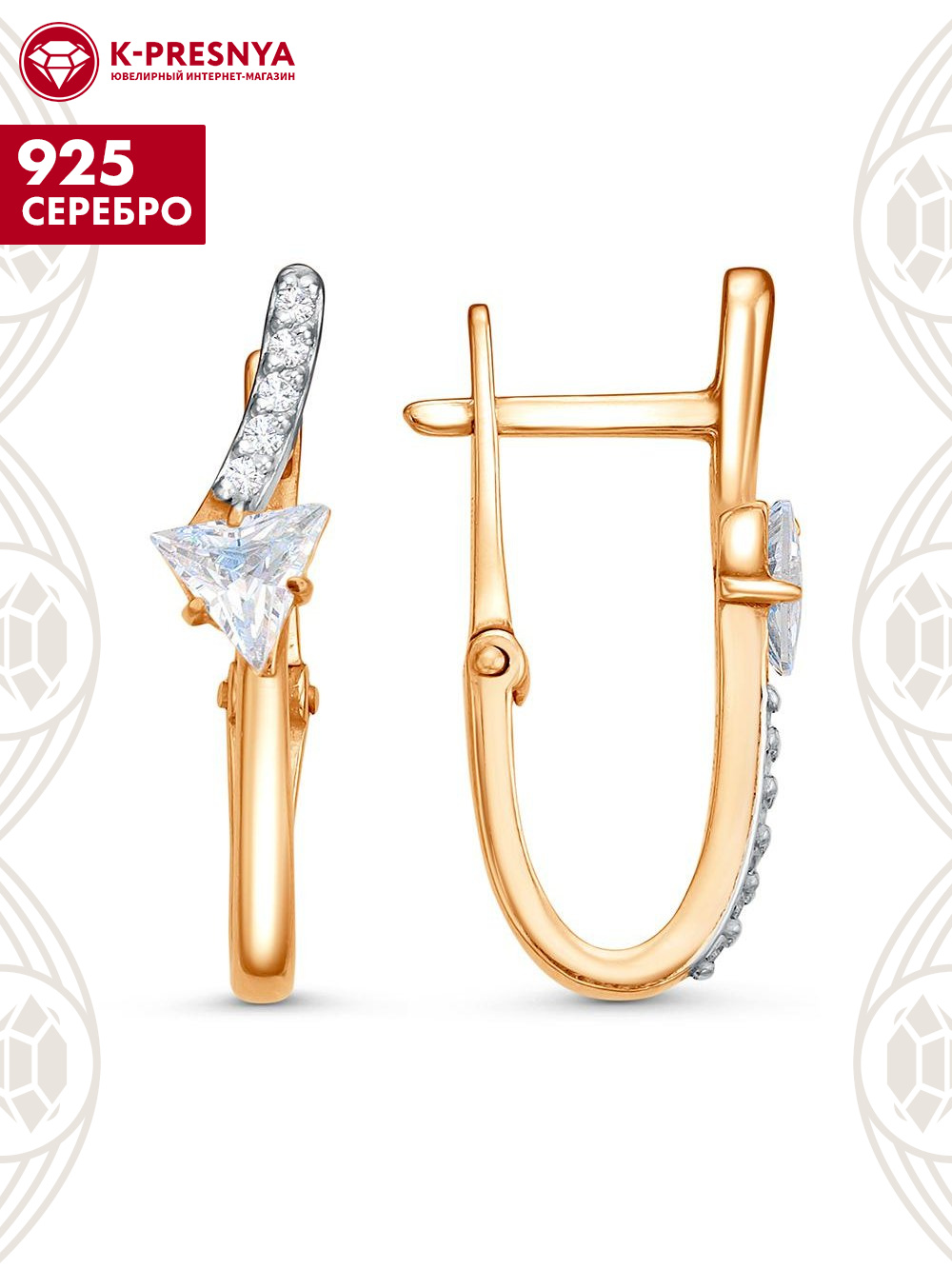 Серьги серебро 925 пробы, покрытие - золочение, выборочное родирование, вставка - фианит (недрагоценный камень)