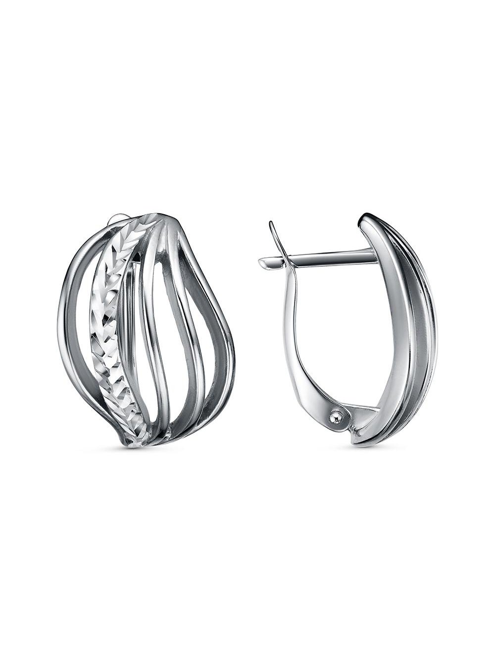 Серьги бижутерия, покрытие - серебрение с оксидированием, отделка - алмазная грань, без вставок