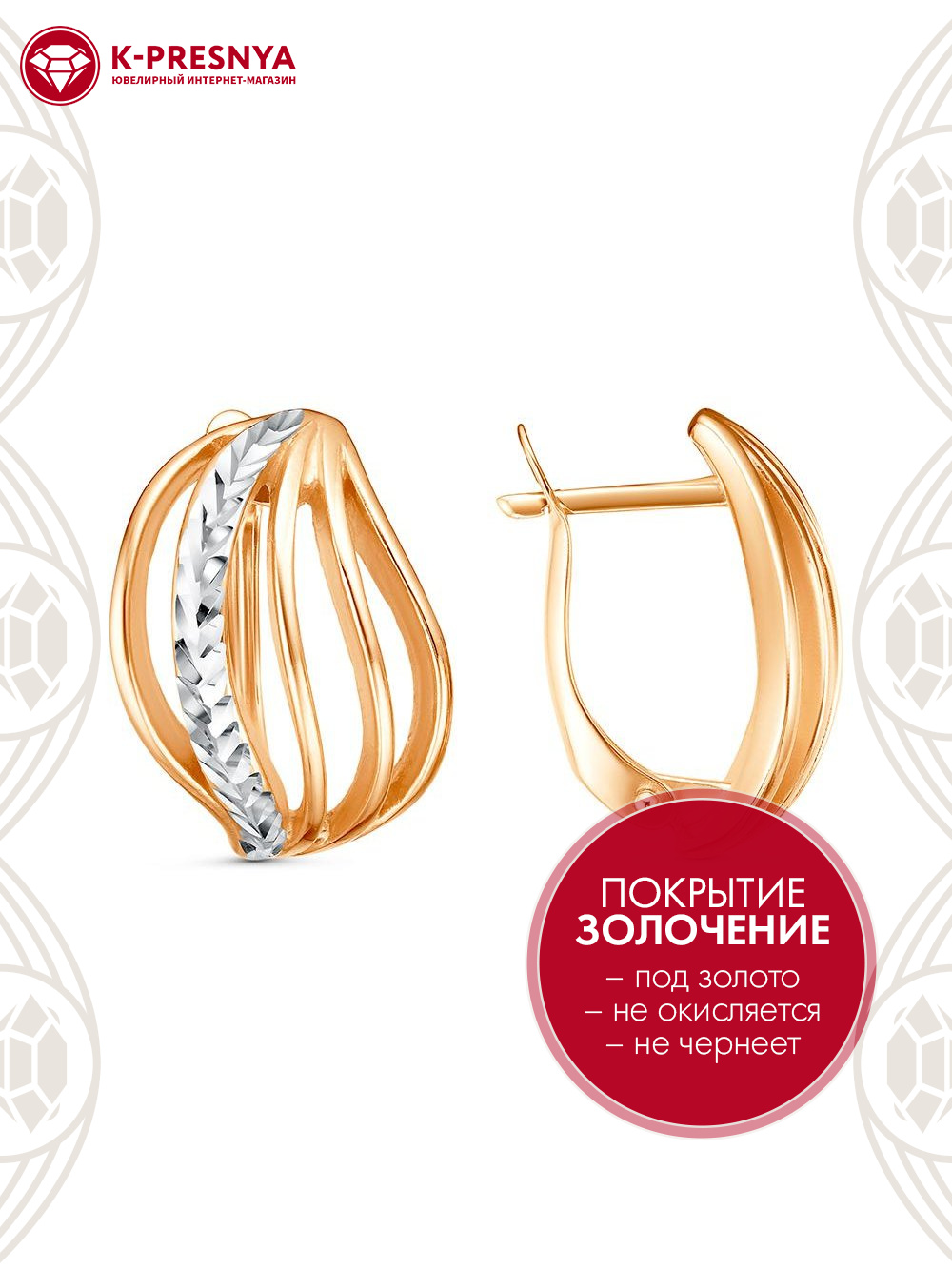 Серьги бижутерия, покрытие - золочение, отделка - алмазная грань, без вставок