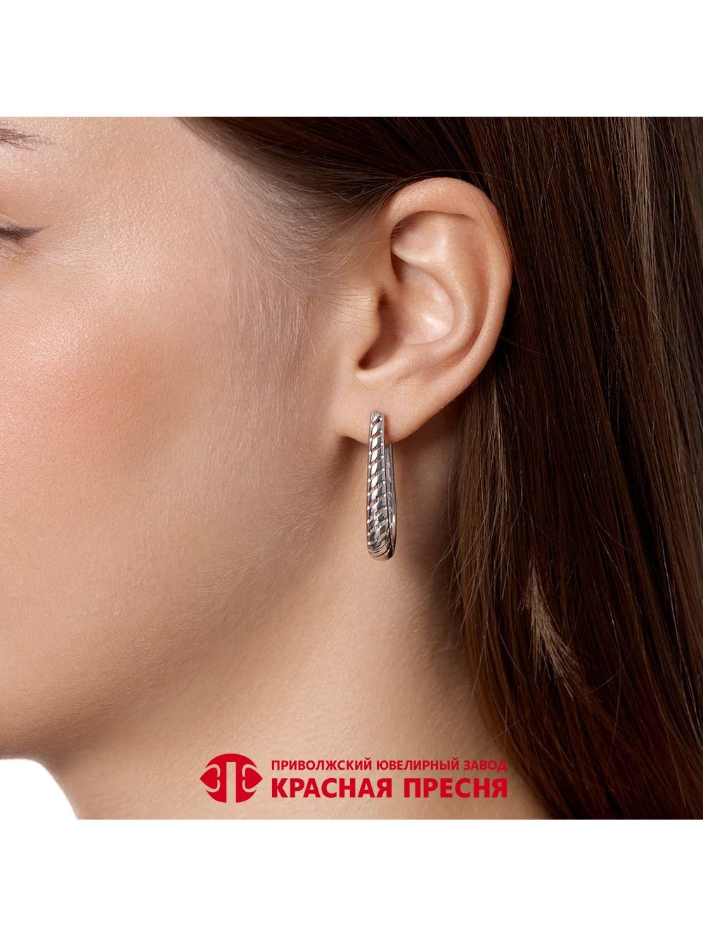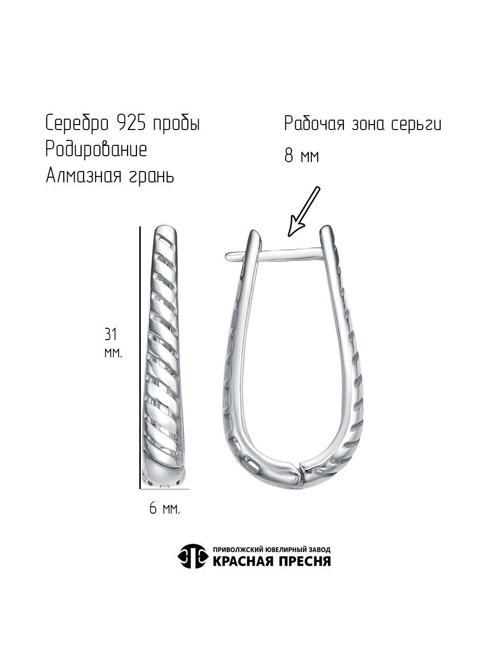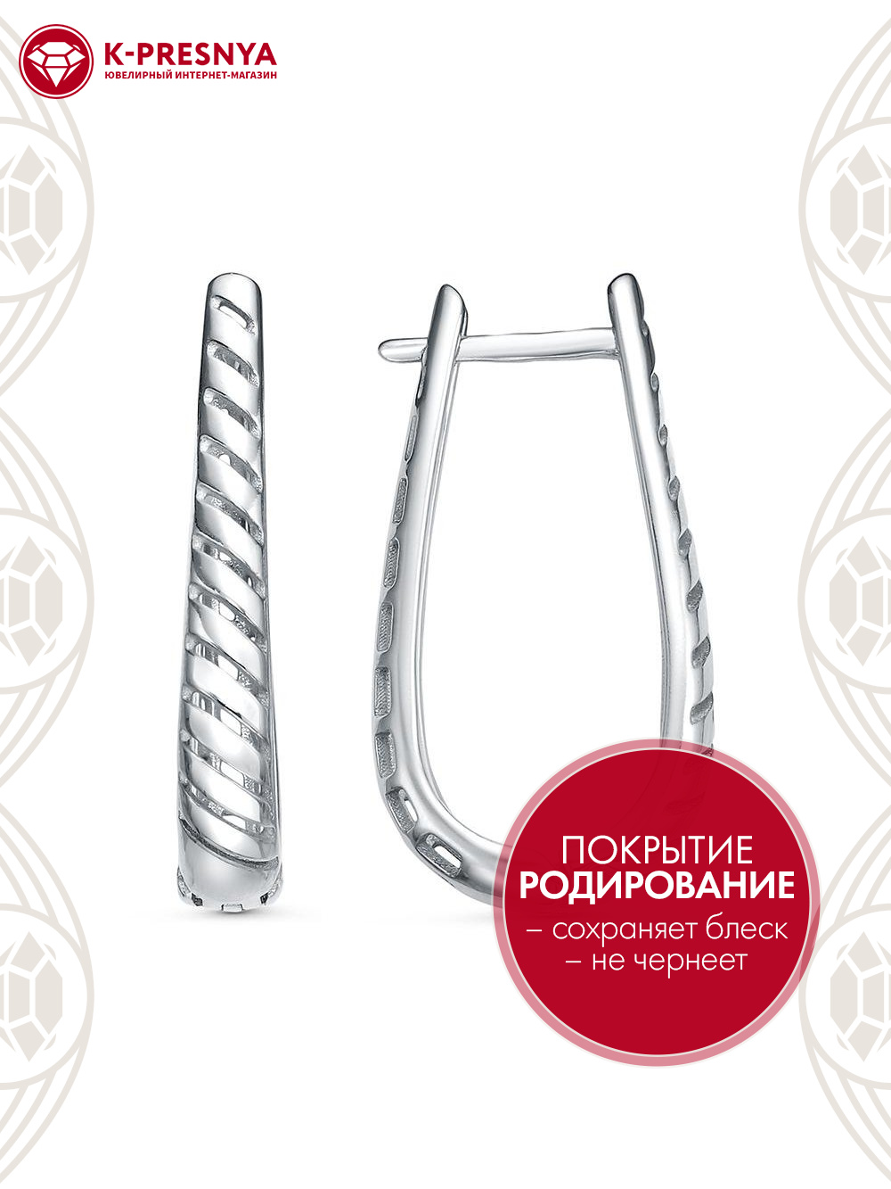 Серьги серебро 925 пробы, покрытие - родирование, отделка - алмазная грань, без вставок