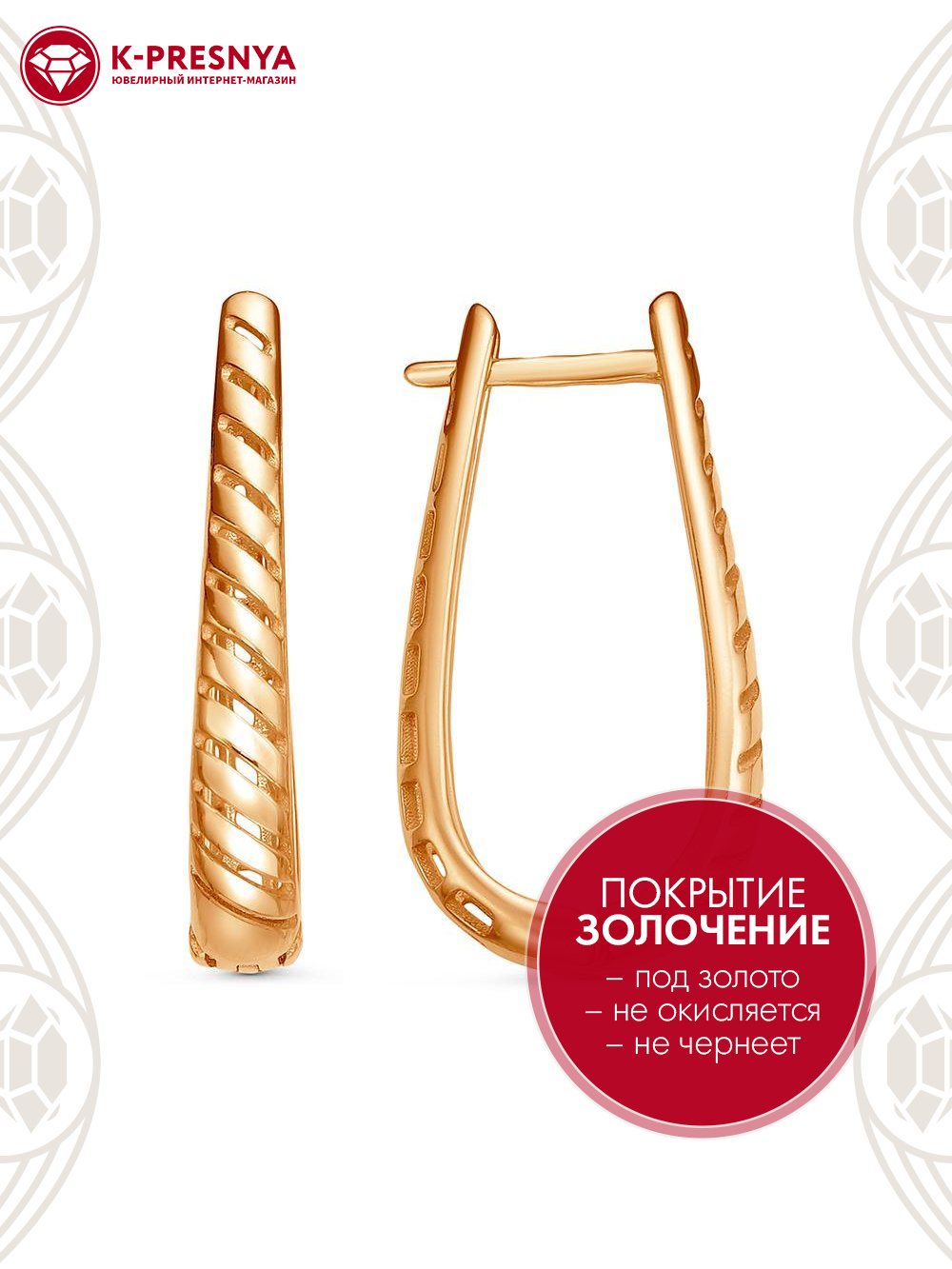 Серьги серебро 925 пробы, покрытие - золочение, отделка - алмазная грань, без вставок