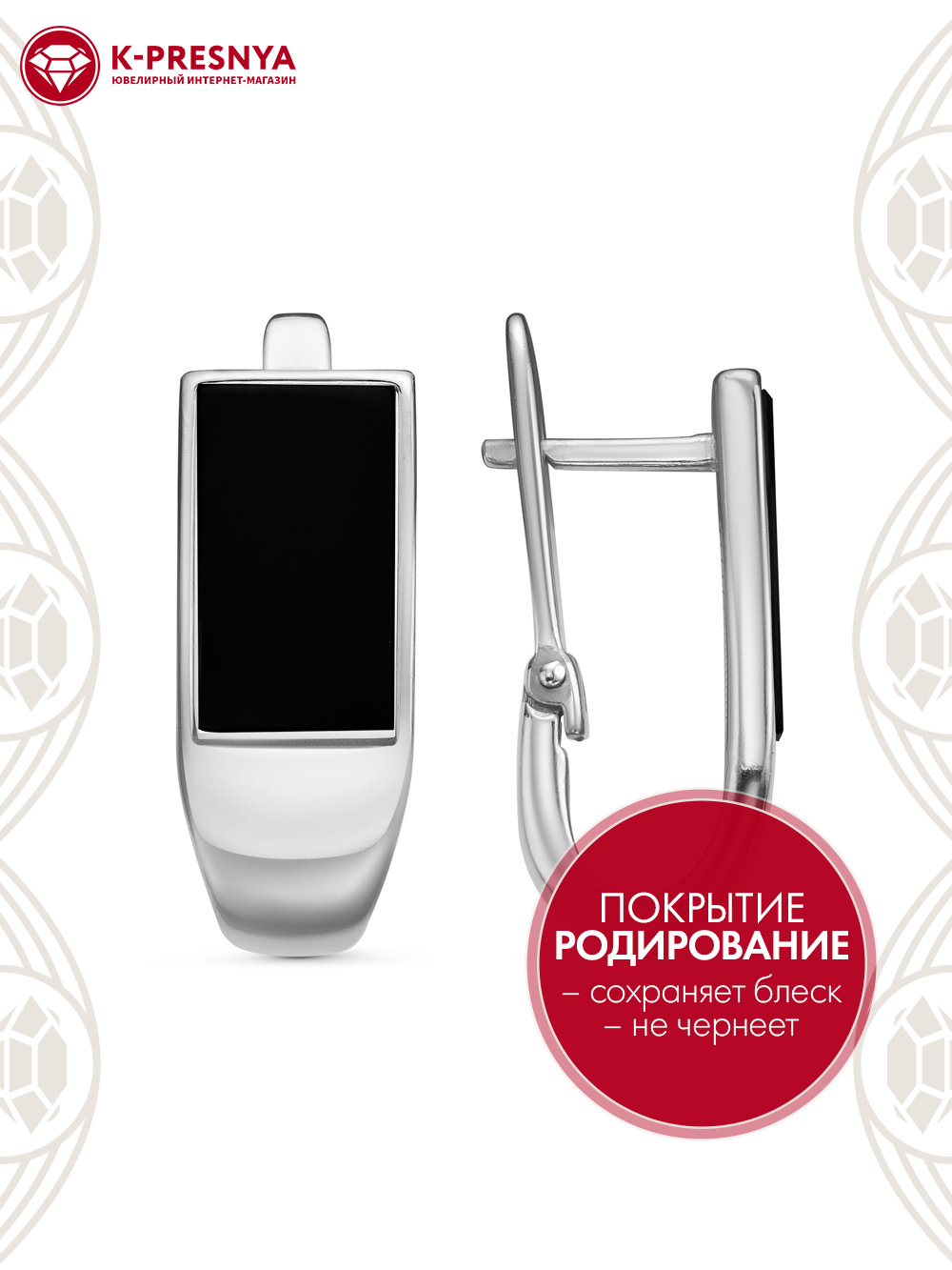 Серьги серебро 925 пробы, покрытие - родирование, вставка - искусственный агат черный